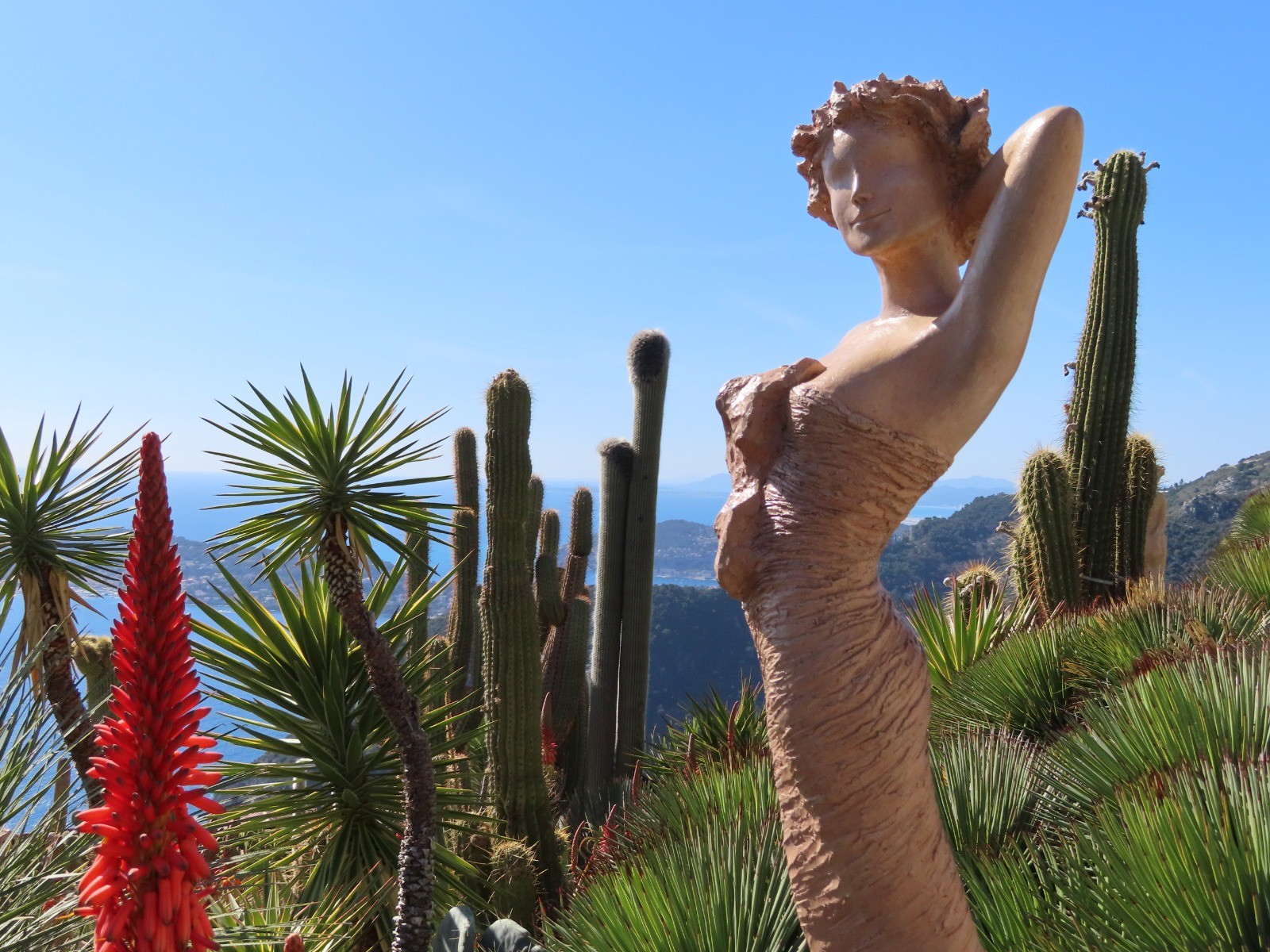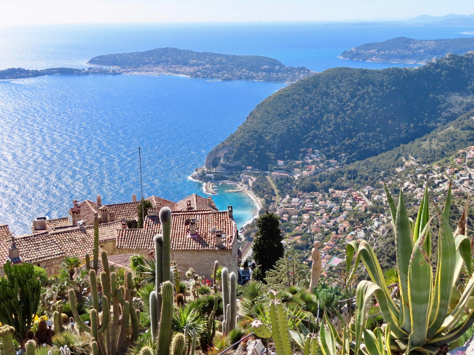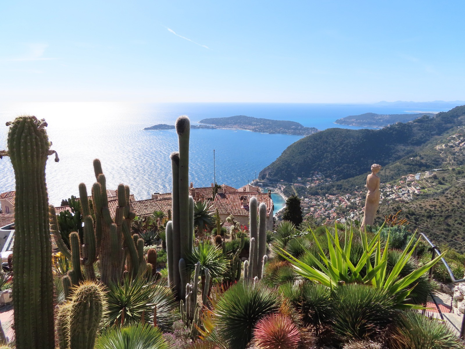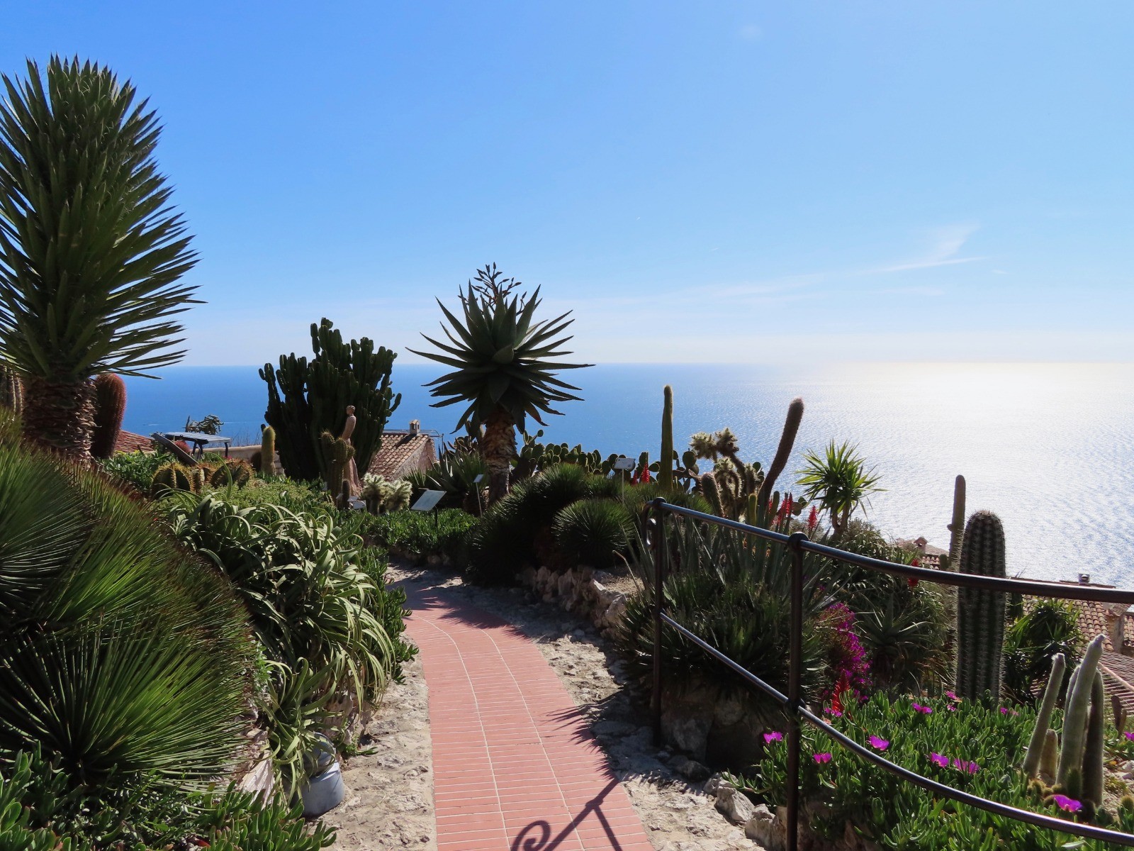 De la gare de Eze Bord de Mer prendre le chemin des pins longeant la mer et suivre après l'avenue Raymond Poincaré le sentier de Frédéric Nietsche, un chemin balisé de 2 km grimpant dans la falaise en surplomb de la mer jusqu'au village qui offre une vue exceptionnelle sur la côte d'Azur.A visiter absolument (accès payant), le Jardin Exotique aménagé sur l'emplacement d'une ancienne forteresse médiévale 430 m au dessus de la Méditerranée. A voir les sculptures de femmes de l'artiste Jean Philippe Richard apportant une note poétique de charme.