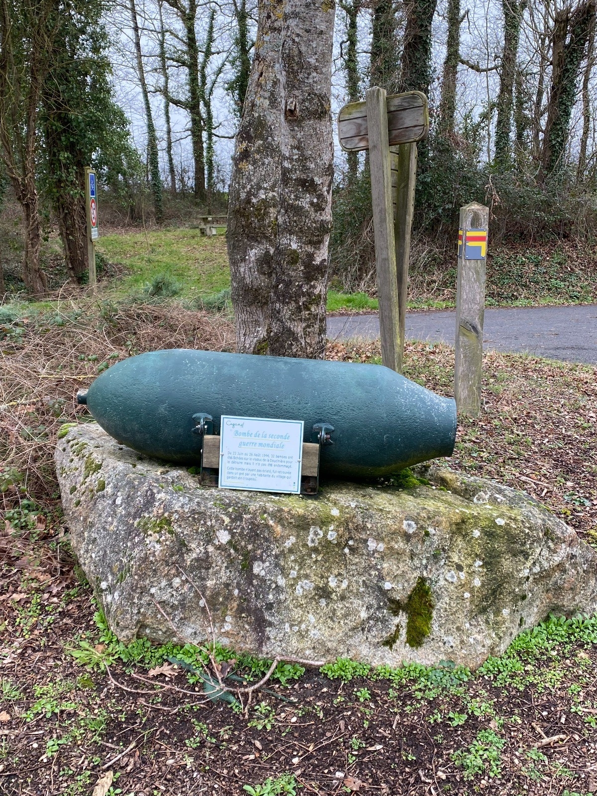A la sortie du village une bombe ( photo no 12 ) retrouvée intacte est exposée.