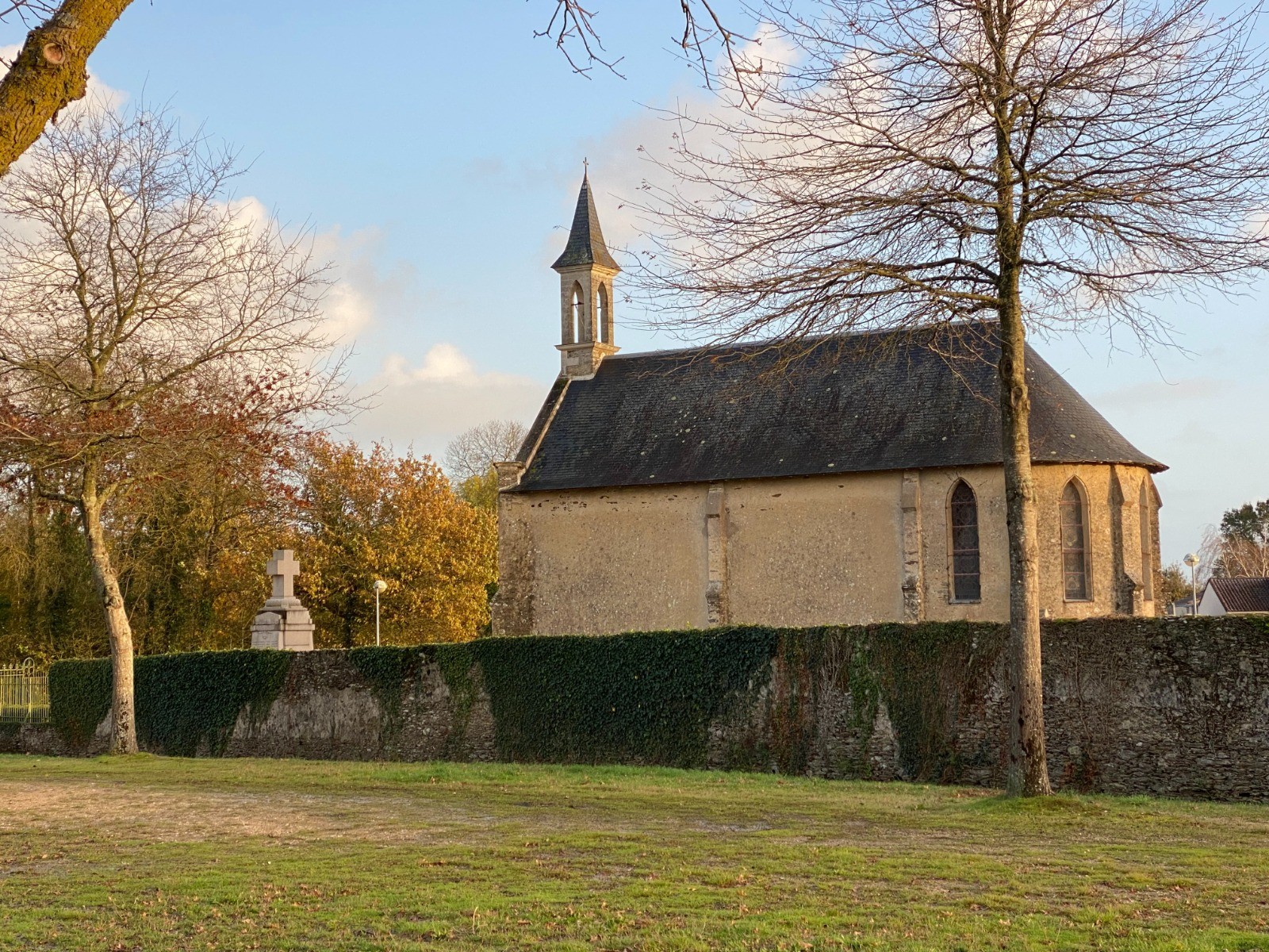 Le Logis de la Patelière (XVIII-XIXe siècle) : la chapelle, qui jouxte l’ancienne propriété des familles Moliès et Dubois, est dédiée à Saint-Clair