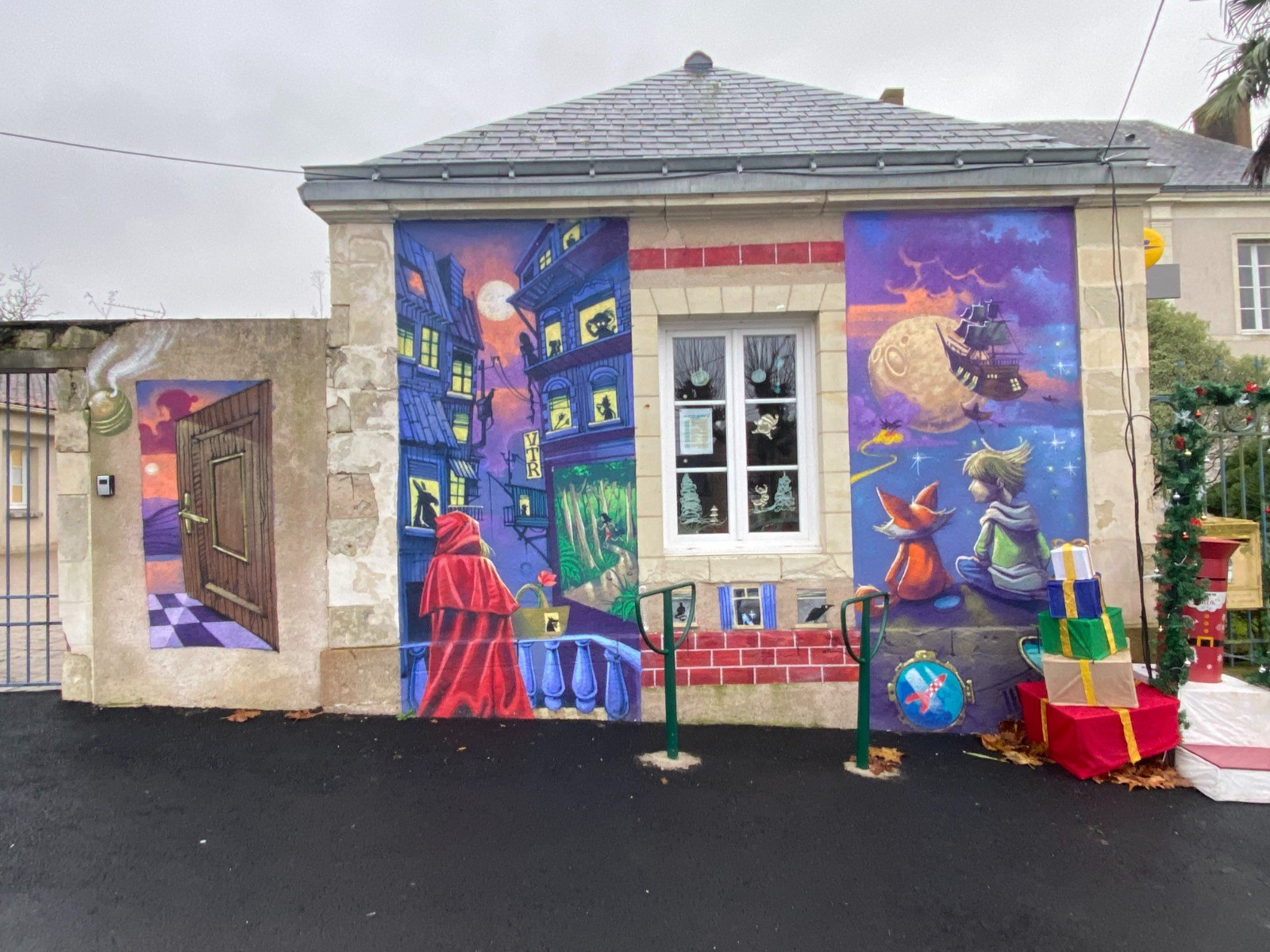 Une longue fresque en hommage à Charles Perrault orne le mur de l’école éponyme de La Sicaudais. ( photo no 15 )