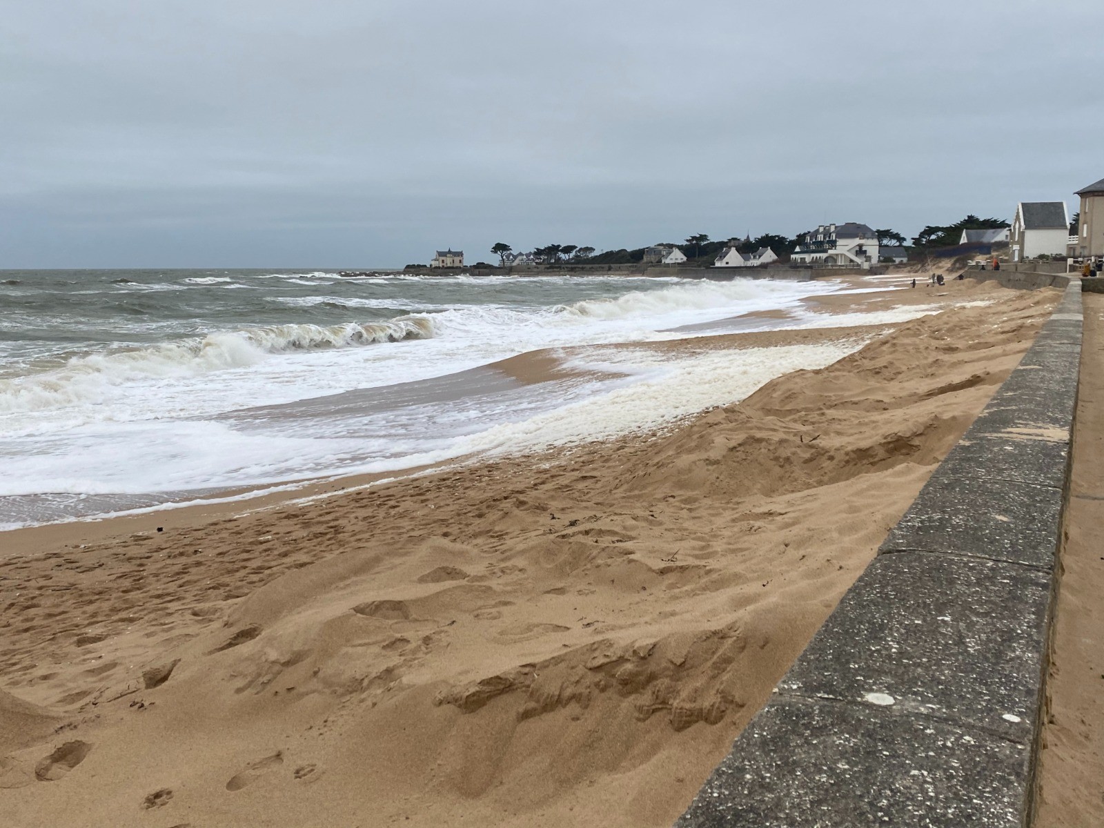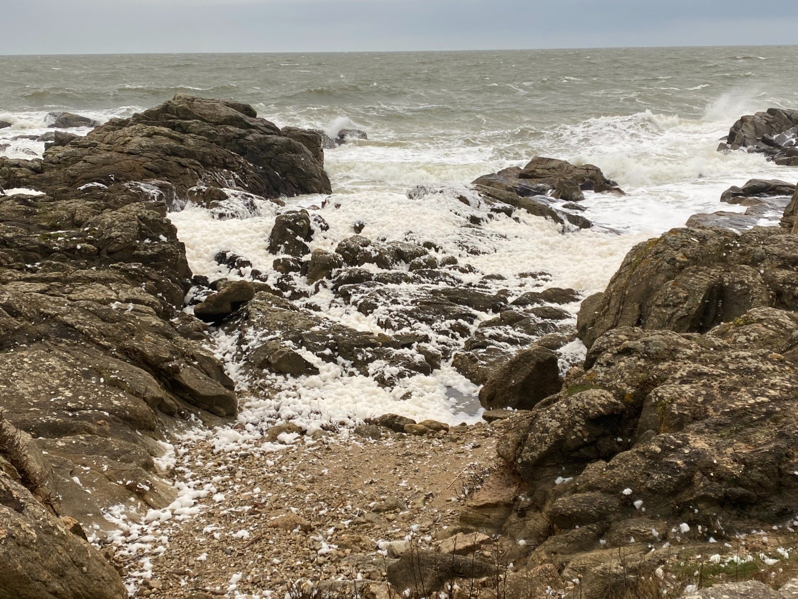 Aujourd'hui la mer est légèrement déchaînée et de gros paquets d'écume viennent caresser les rochers et nous donnent l'impression qu'il neige.