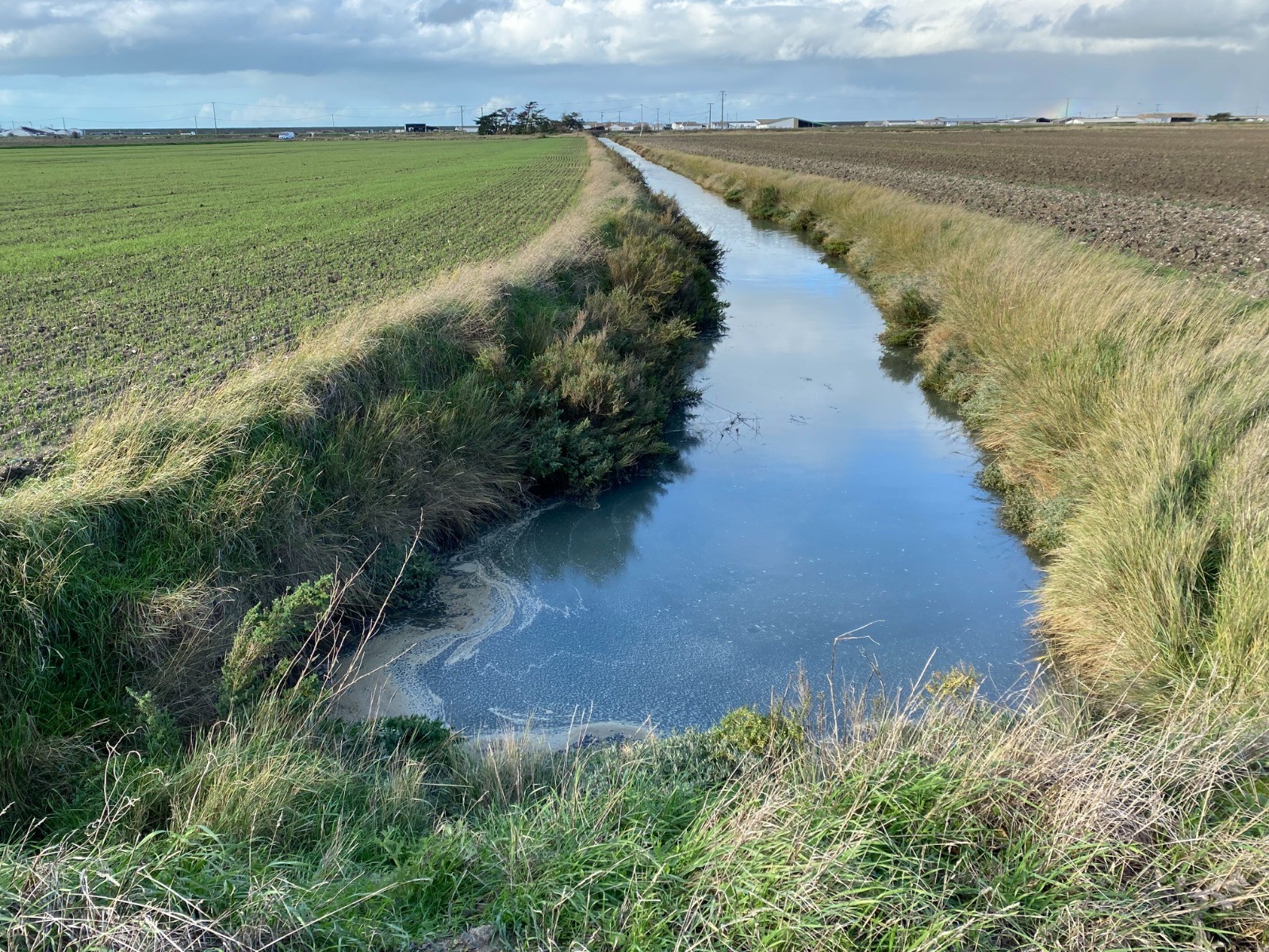 A droite : Les polders du Dain avec ses cultures céréalières.