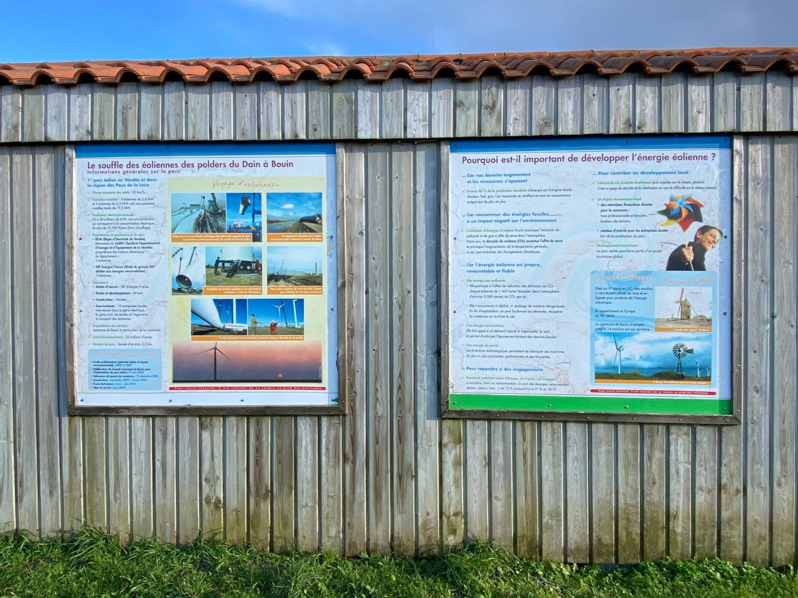 Le parc éolien de Bouin avec ses huit éoliennes ( photo no 3 ) d’une hauteur de 62 mètres occupe également ce lieu.