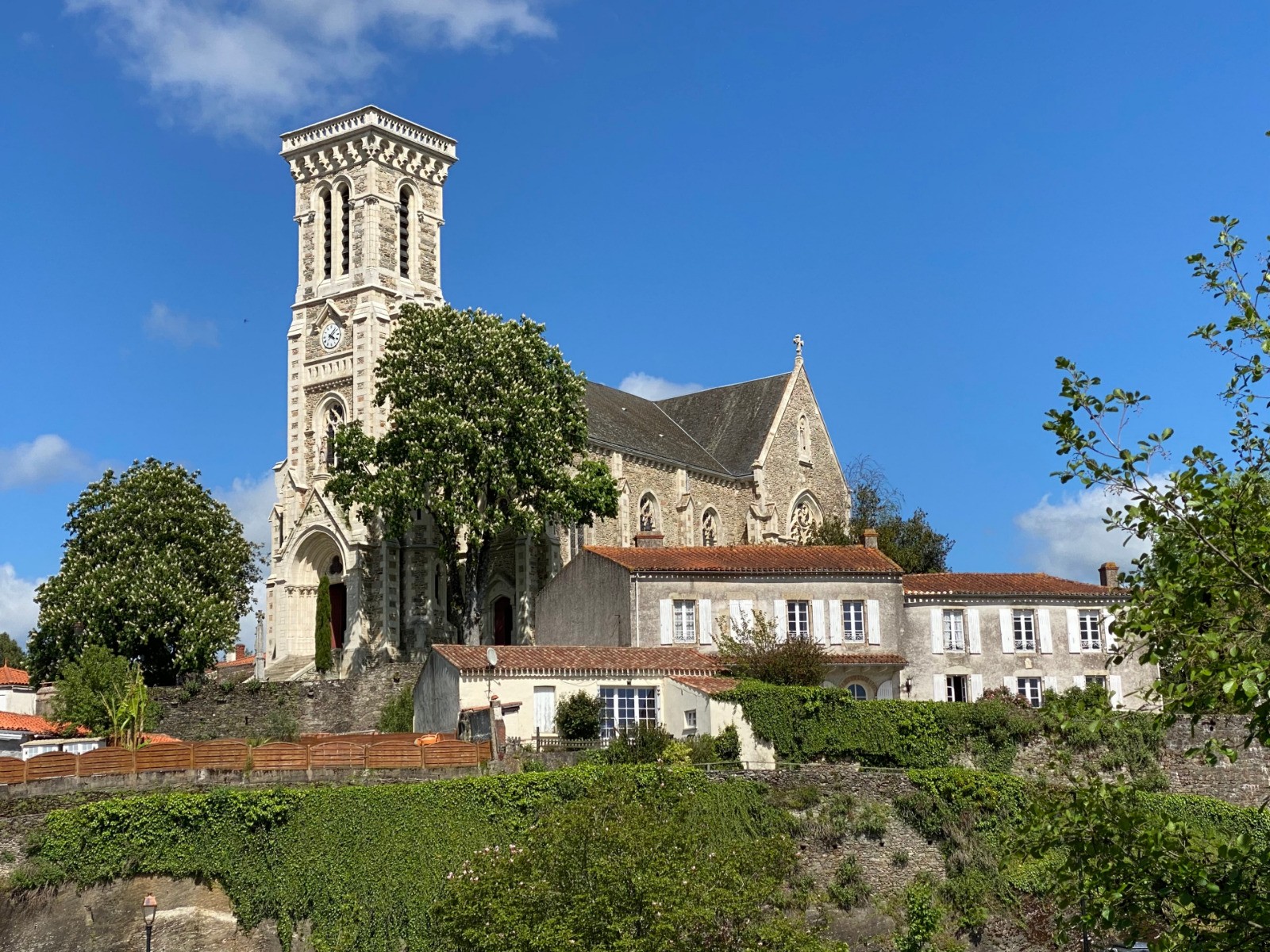 Retour vers le château en traversant le pont sur la Vie et passage devant l'église église Saint-Martin, datant de 1902 et de style néo-gothique. ( photo no 18 )