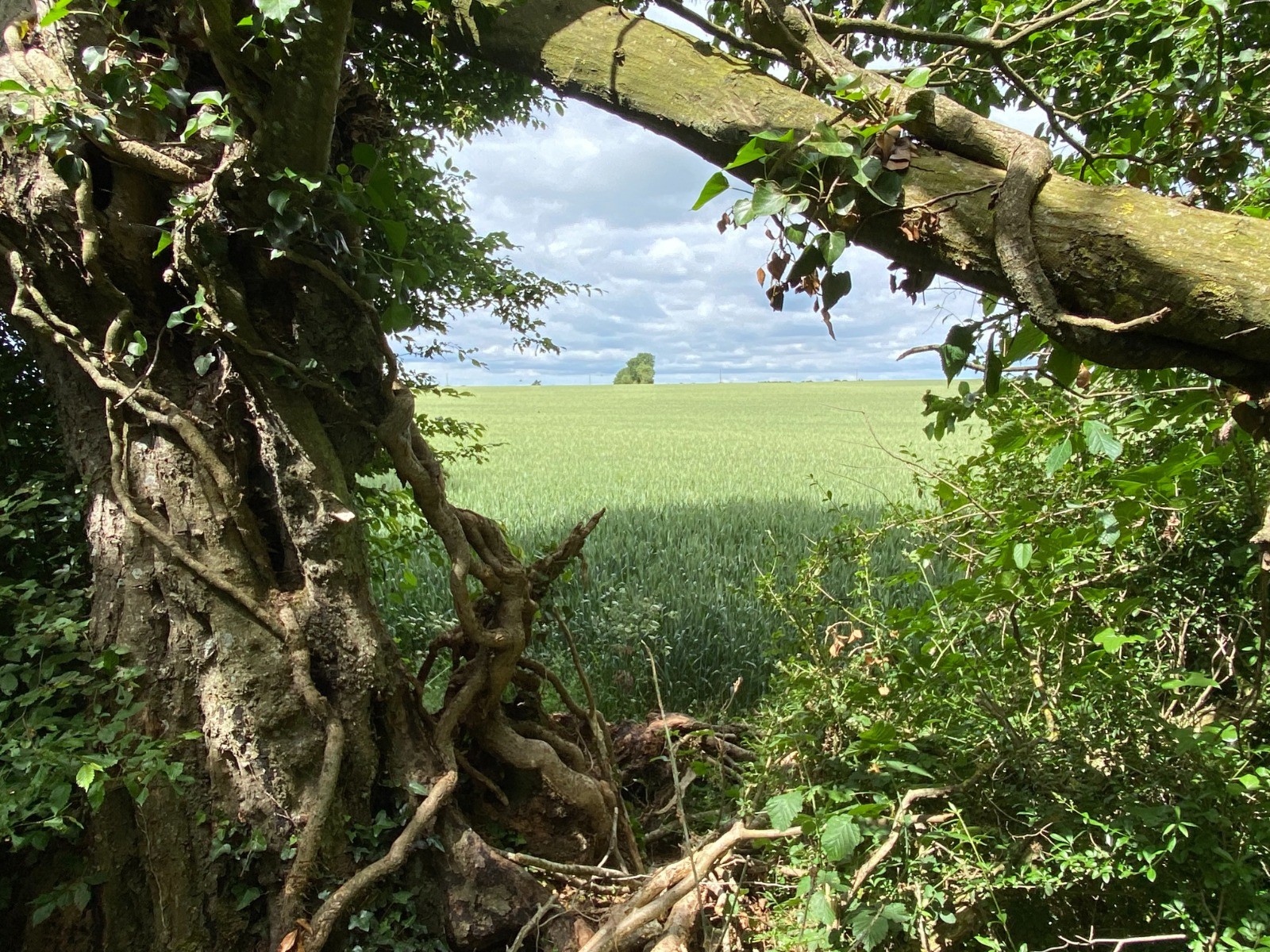 Après un peu plus de deux kilomètres sur le macadam je retrouve le GR235 qui longe des champs de céréales : principalement du blé, de l'orge, du maïs, du colza... sans oublier des cultures de petits pois, de tournesols.
