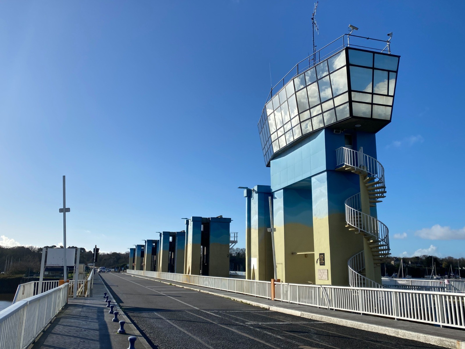 Puis nous atteignons le barrage ( photo no 7 ) qui est le plus important barrage d'estuaire d'Europe, construit en 1970.