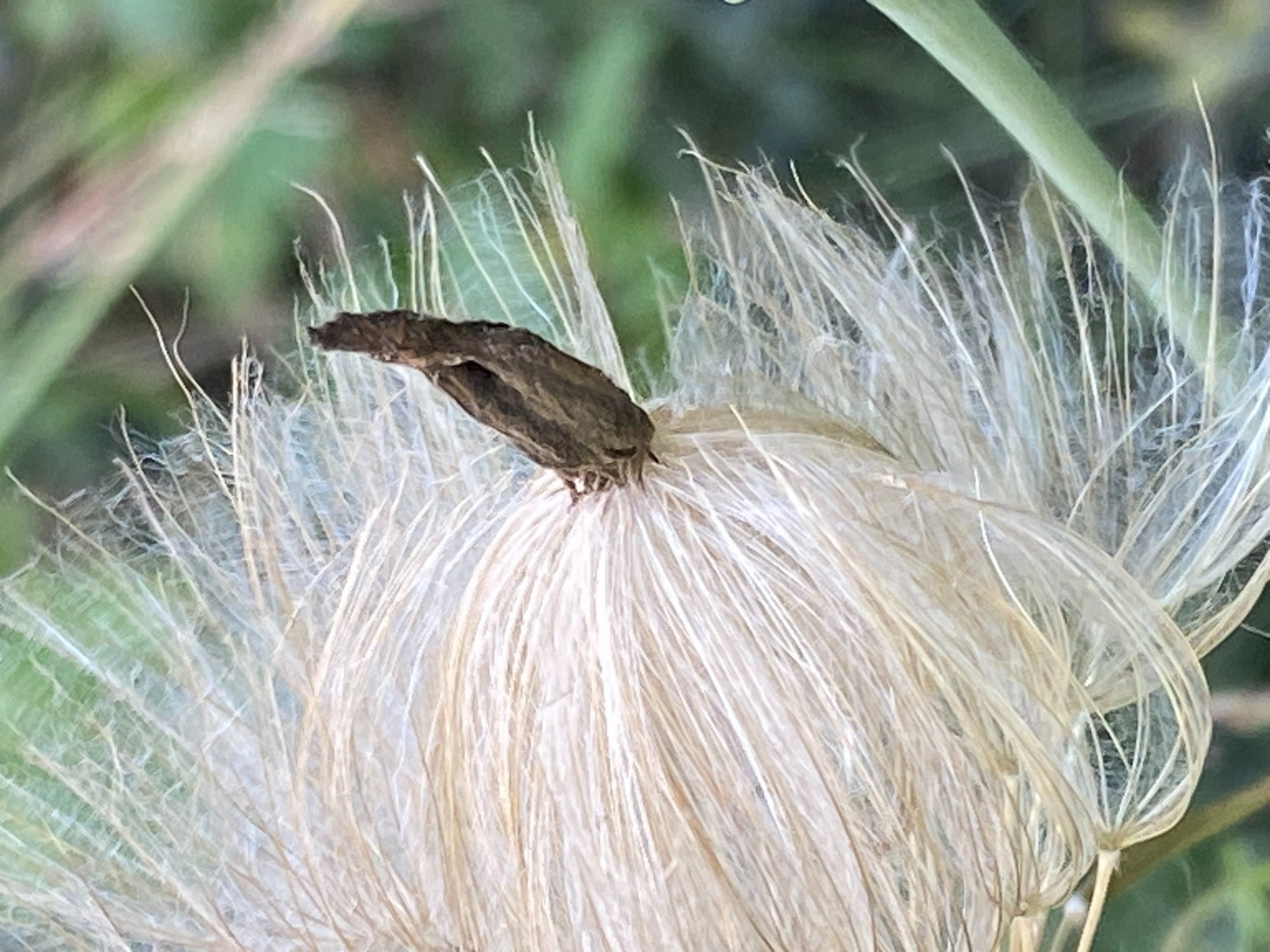 Photo no 18 : Salsifis des prés . Les aigrettes restent emmêlées tandis que les graines se sont détachées mais n'arrivent pas à s'envoler.