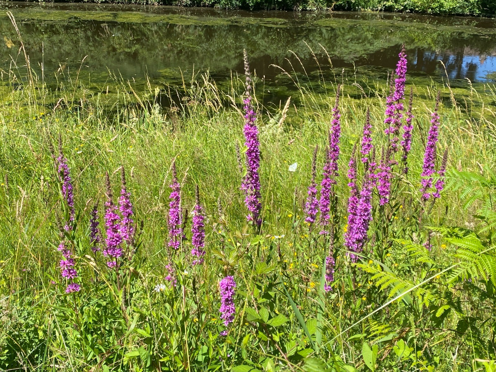 Canal très calme avec une flore très abondante sur les berges dont les salicaires ( photo no 12 ).