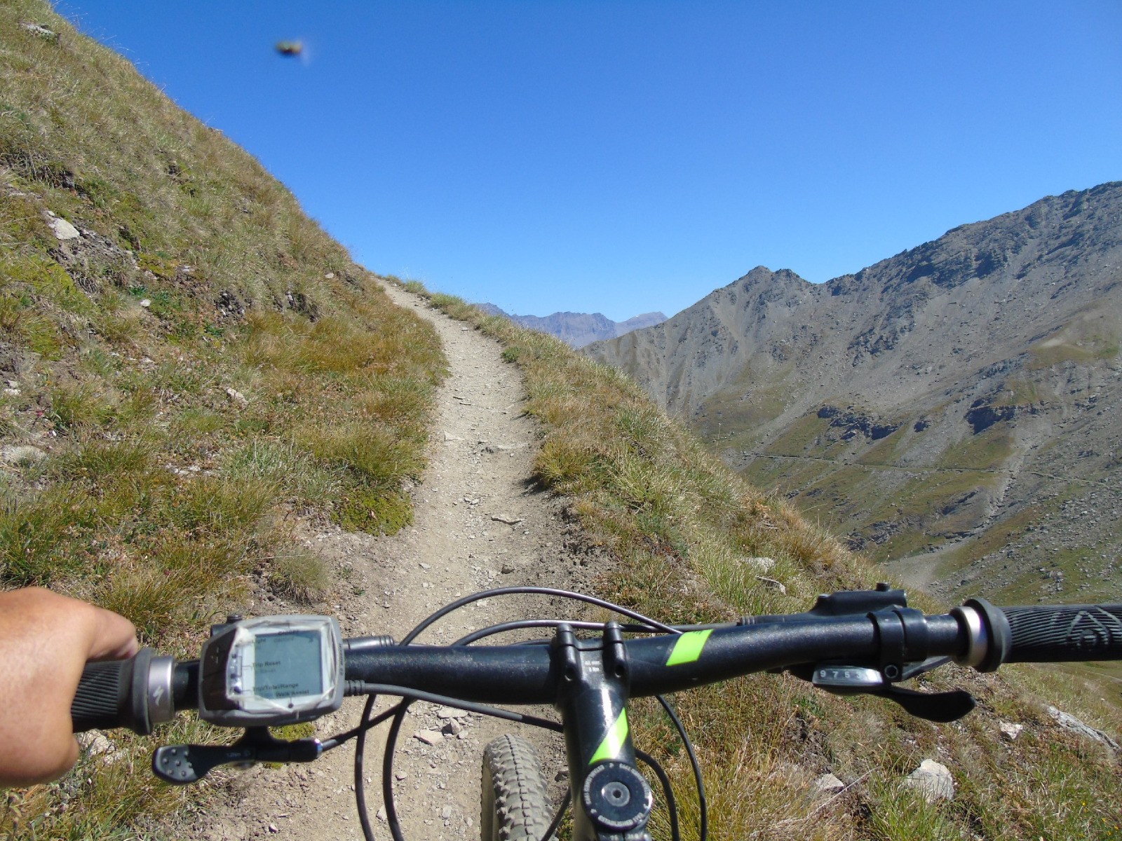 Une fois au col, c’est à donfe sur le single de versant S du petit Mont Cenis. Après la descente du Mont Froid qui demande de la concentration, c’est l’occas’ de lâcher les chevaux (attention quand même aux randonneurs).