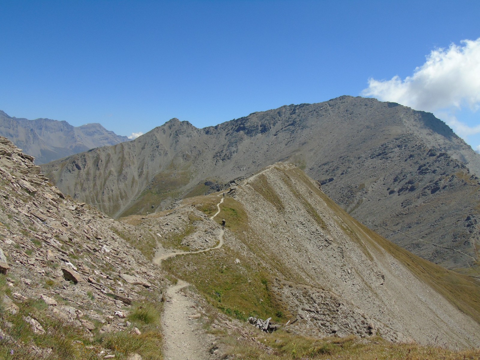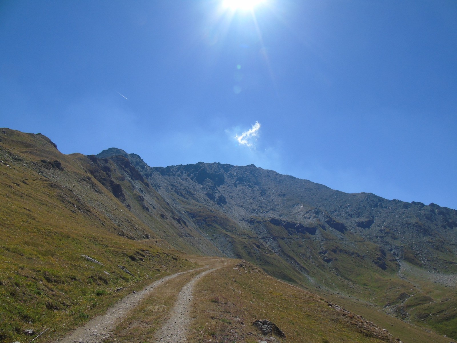 Prendre main gauche une piste évidente assez large en pente douce indiquée "lac et col de Sollieres), croisement à 2300m pour la piste de l’Erellaz (ne pas la prendre)