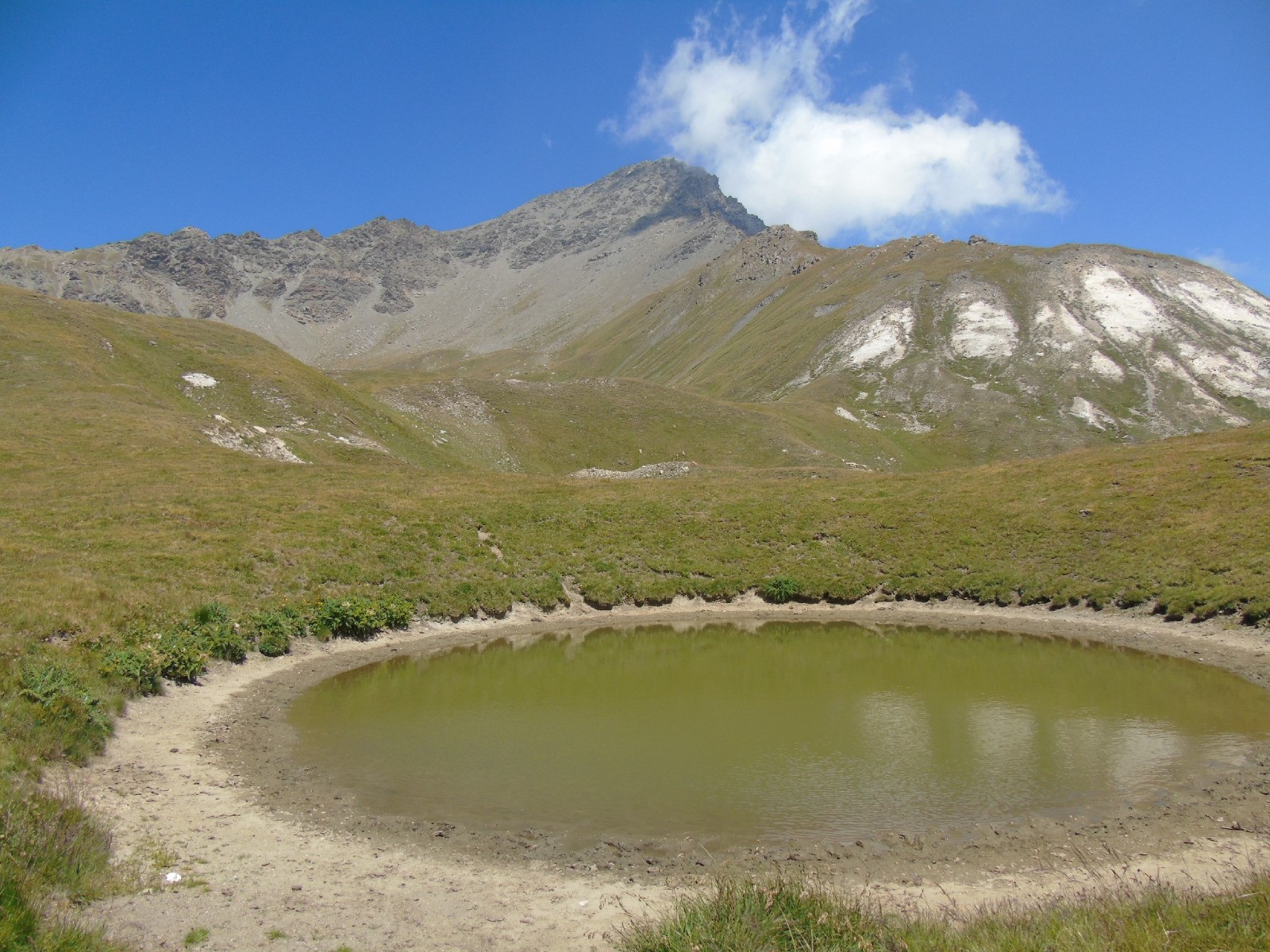 La suivre sur plusieurs lacets (c’est très chouette aux remontées mécaniques près malgré tout discrètes), allez faire un tour au lac de Sollières sous la pointe de Cugne, puis continuer jusqu’au au départ du chemin qui traverse à flanc tout le versant W du Signal du Petit Mont Cenis et qui abouti au col de Sollières.