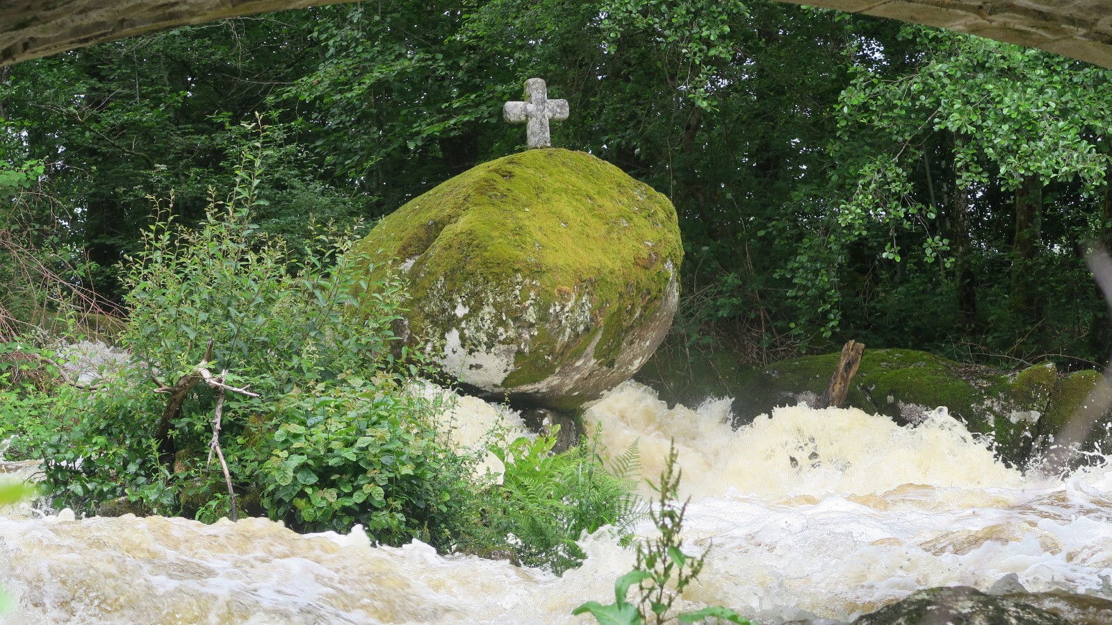 Montaignac-St Hippolyte : le site du Doustre où le torrent rebondit sur un chaos rocheux-sentier de découverte.