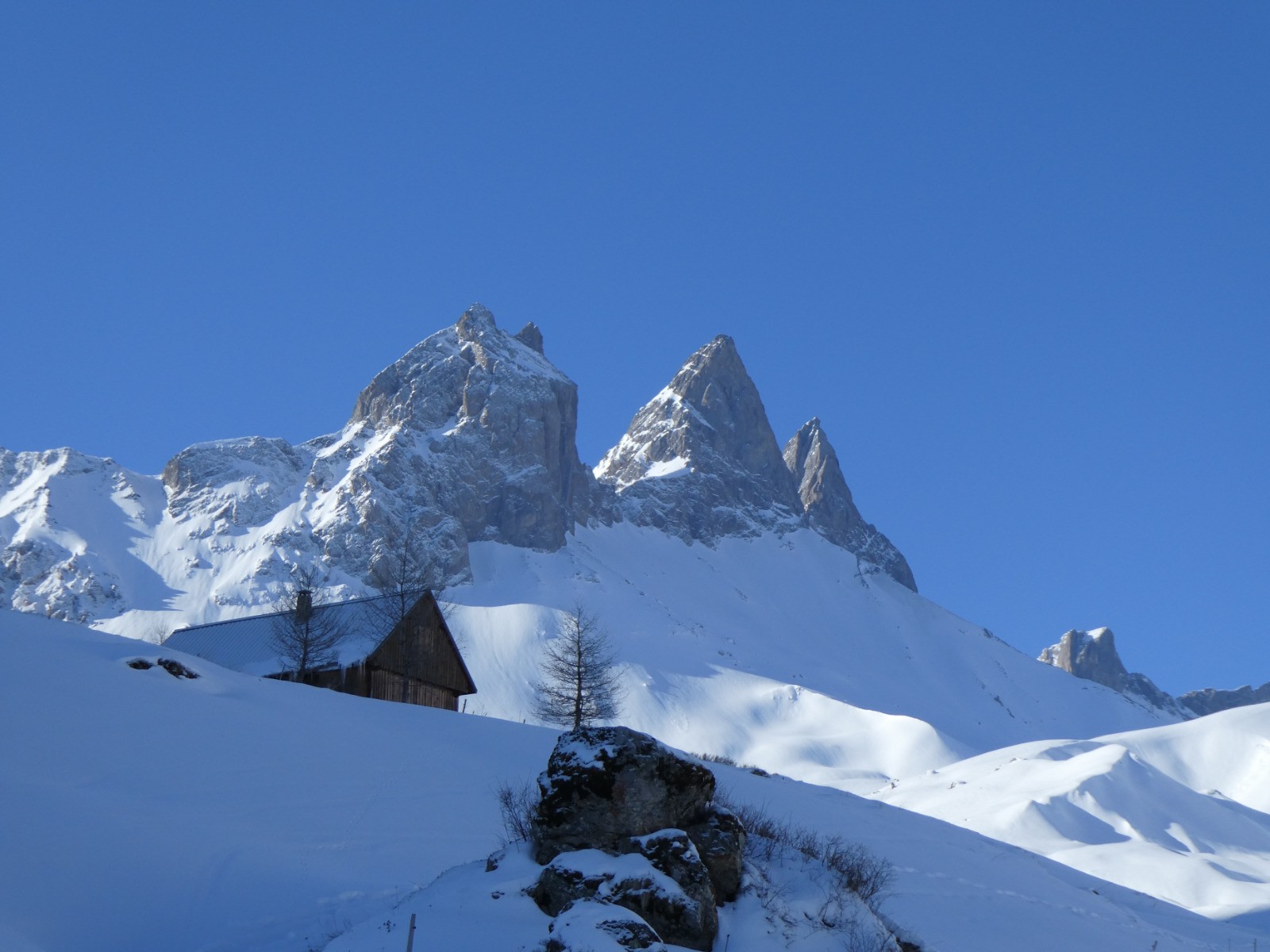 Splendide rando facile à ski au pied des fabuleuses aiguilles d'Arves. L'itinéraire est quasiment sur en cas de nivologie douteuse.