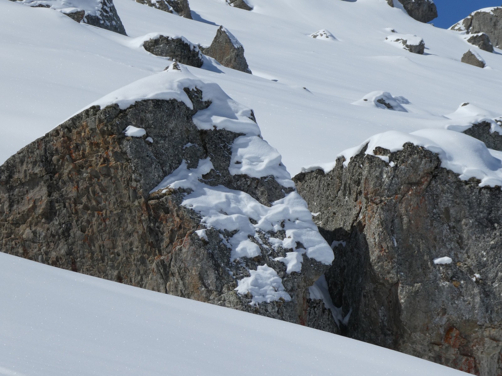 La neige faisait rêver en partant, mais cette petite pellicule argentée a fait que ça n’a pas regelé dessous. Donc ski à la descente infâme. Une croute de regel cassante sur de la profonde mouillée. Ça fait partie du jeu.