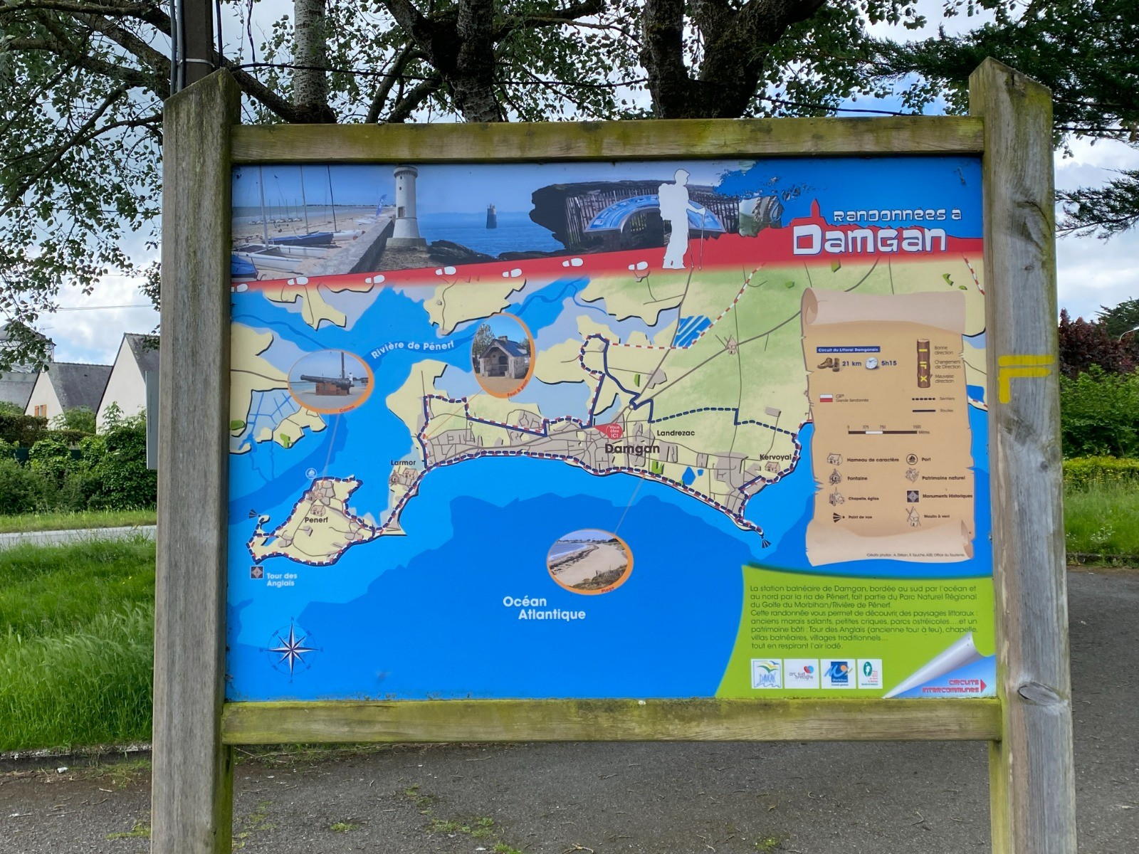Ce circuit offre des points de vue tant sur la Rivière de Pénerf, son port et ses anciens marais salants que sur l'Océan Atlantique en croisant la Tour des Anglais, ancienne tour à feu inscrite aux Monuments Historiques.