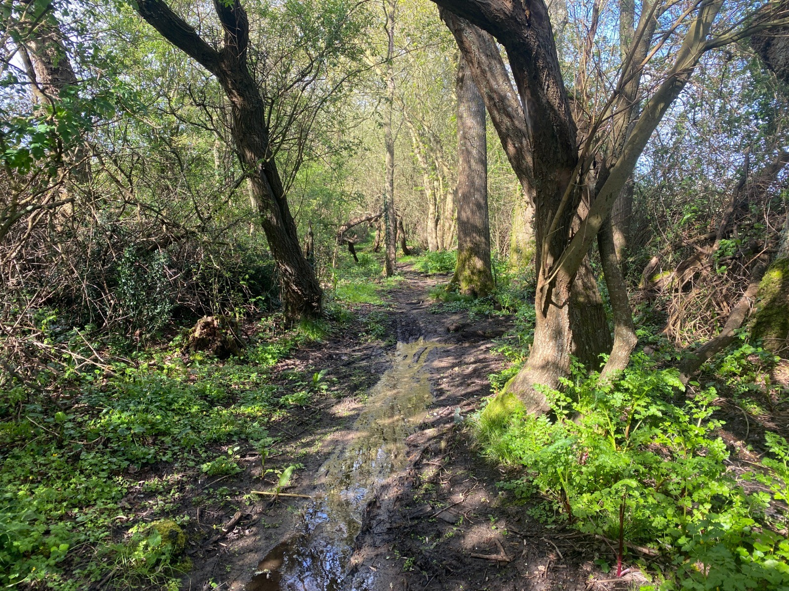 Le premier chemin prévu par la randonneur de Décathlon est encore bien recouvert d'eau.