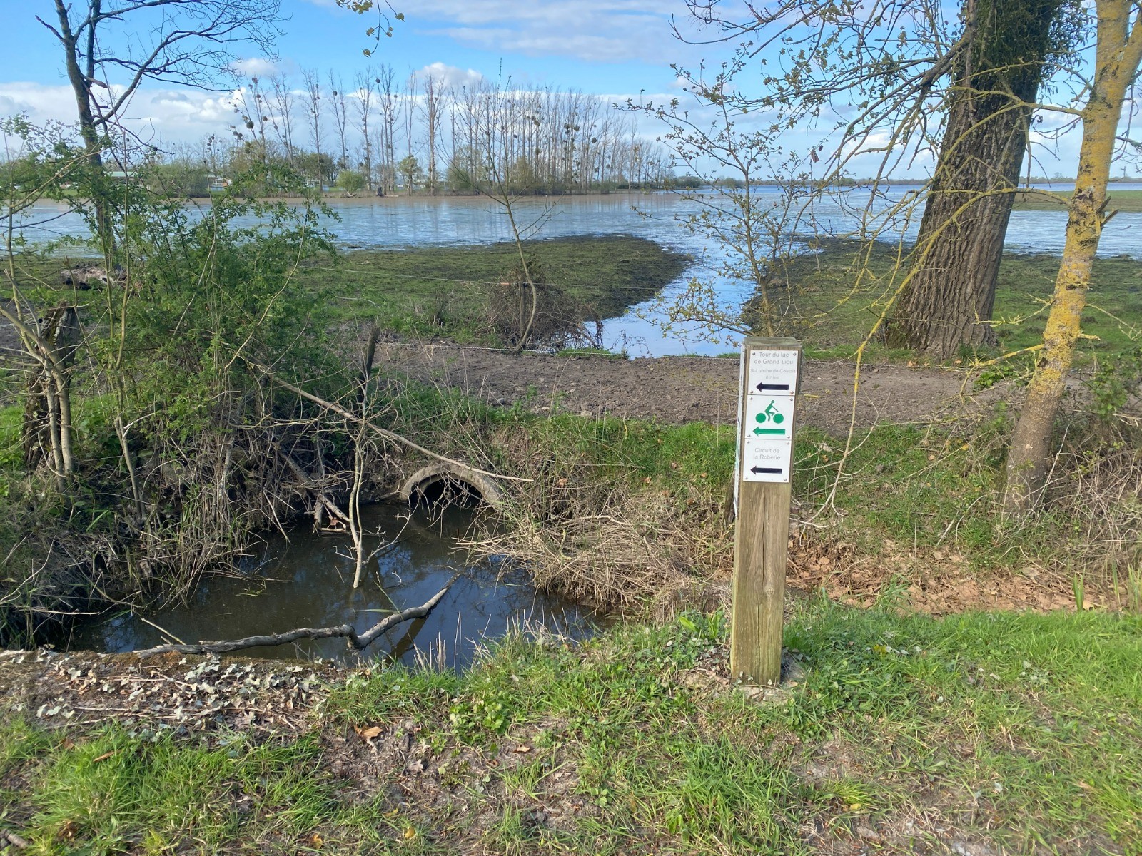 Kilomètre 12 direction les marais de l'Angle où là aussi un panneau conseille passage de juin à septembre.