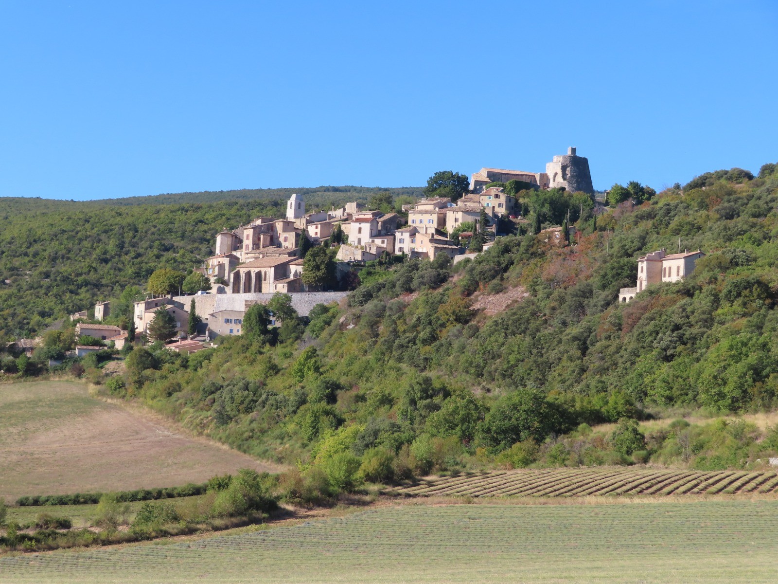 De la place, prendre le chemin des crottes au sud du village, puis suivre les balises du GR4 se dirigeant vers les gorges de Vaumale. Au lieu dît les Gamettes, quitter le GR4 et remonter nord sur le GR6 en direction de l'Abbaye de Valsaintes au hameau de Boulinette. Ouvert à la visite le jardin de l'Abbaye est un lieu atypique où l'on peut déambuler parmi des espaces floraux remarquables. Remonter nord sur le GR6 jusqu'à la D18, tourner à gauche et suivre cette petite route vers l'ouest vers Simiane la Rotonde. Après la route de Banon prendre le chemin des Granges et la Rue Montée du Faubourg pour découvrir dans le centre historique de Simiane-la-Rotonde, l'église Sainte Victoire, le château avec son incroyable rotonde datant du 12e siècle, les ruelles et maisons adossées aux remparts.Site internet de Félix35 : www.au-fil-des-sentiers.fr/