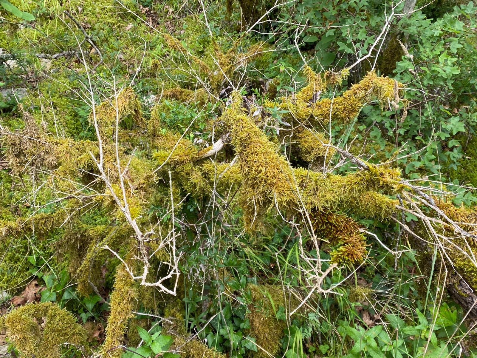 Photo no 9 : Les arbres morts et les murets sont recouverts d'une mousse très envahissante.