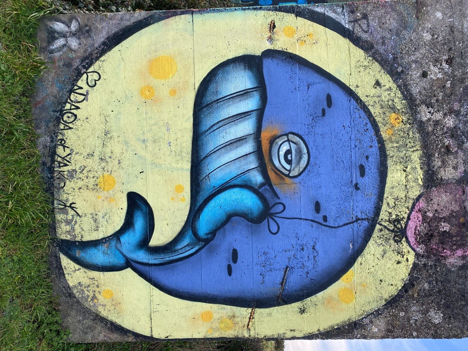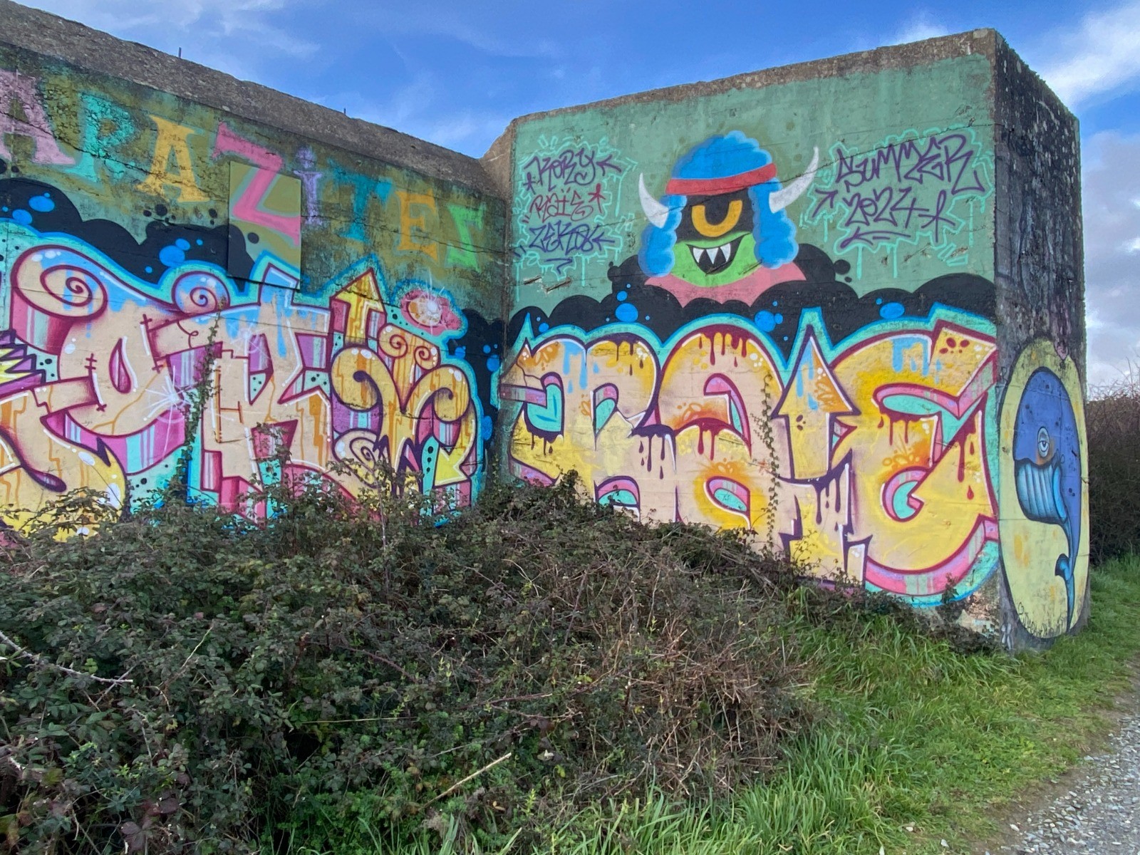Vers le kilomètre 5, il a même réalisé une fresque de plusieurs dizaines de mètres ( abimée par le temps et dans un chemin très étroit )