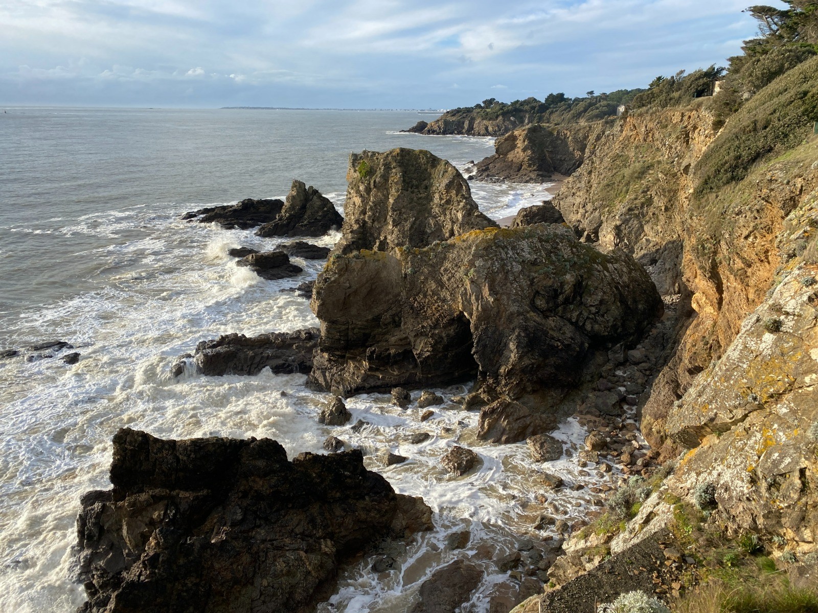 14H, c'est parti pour une magnifique randonnée. La mer est légèrement agitée et la marée haute... la prudence s'impose.
