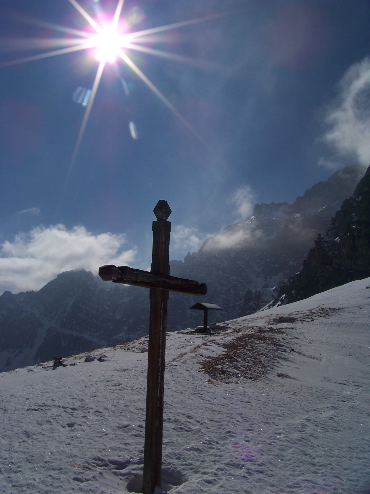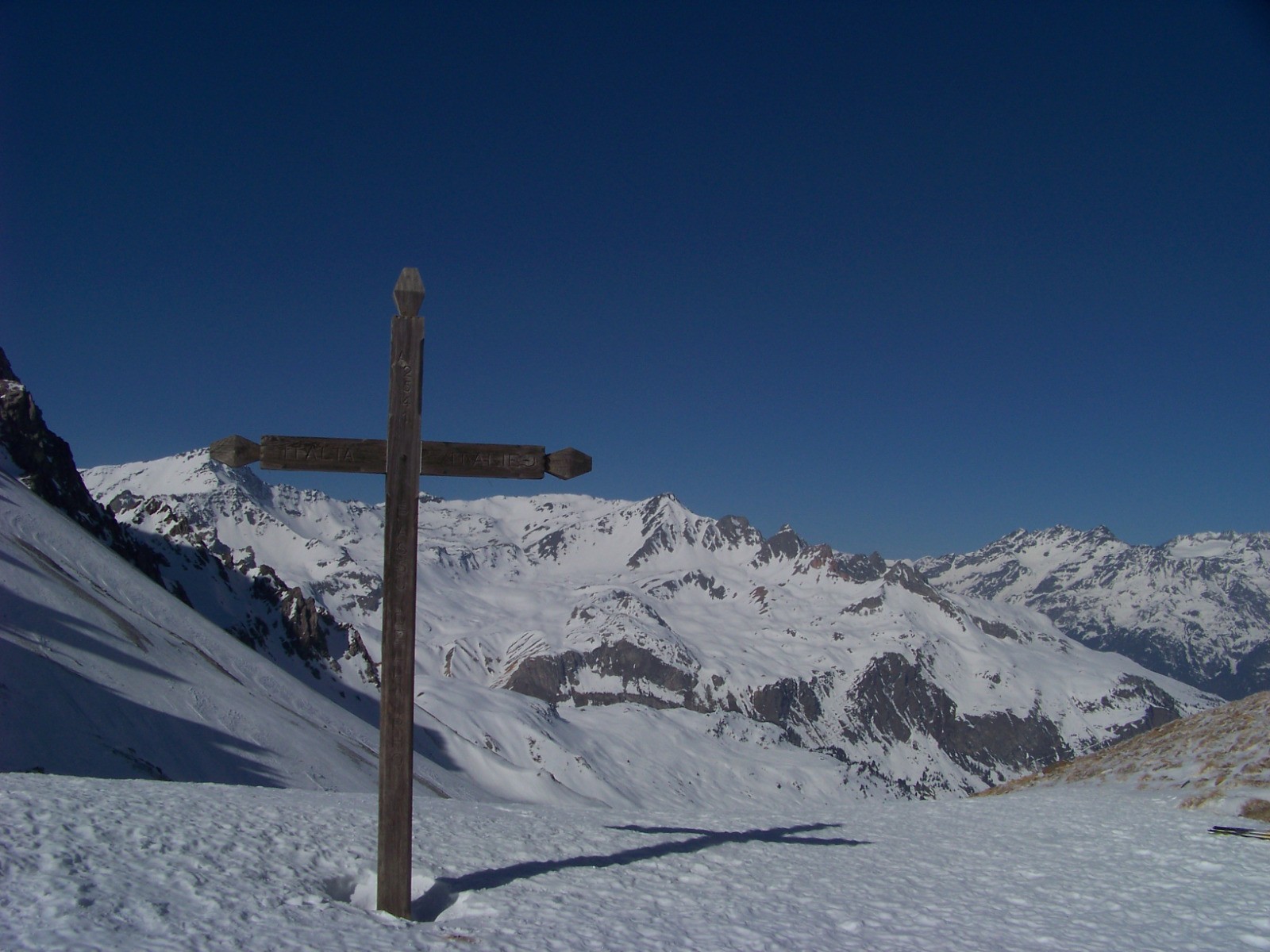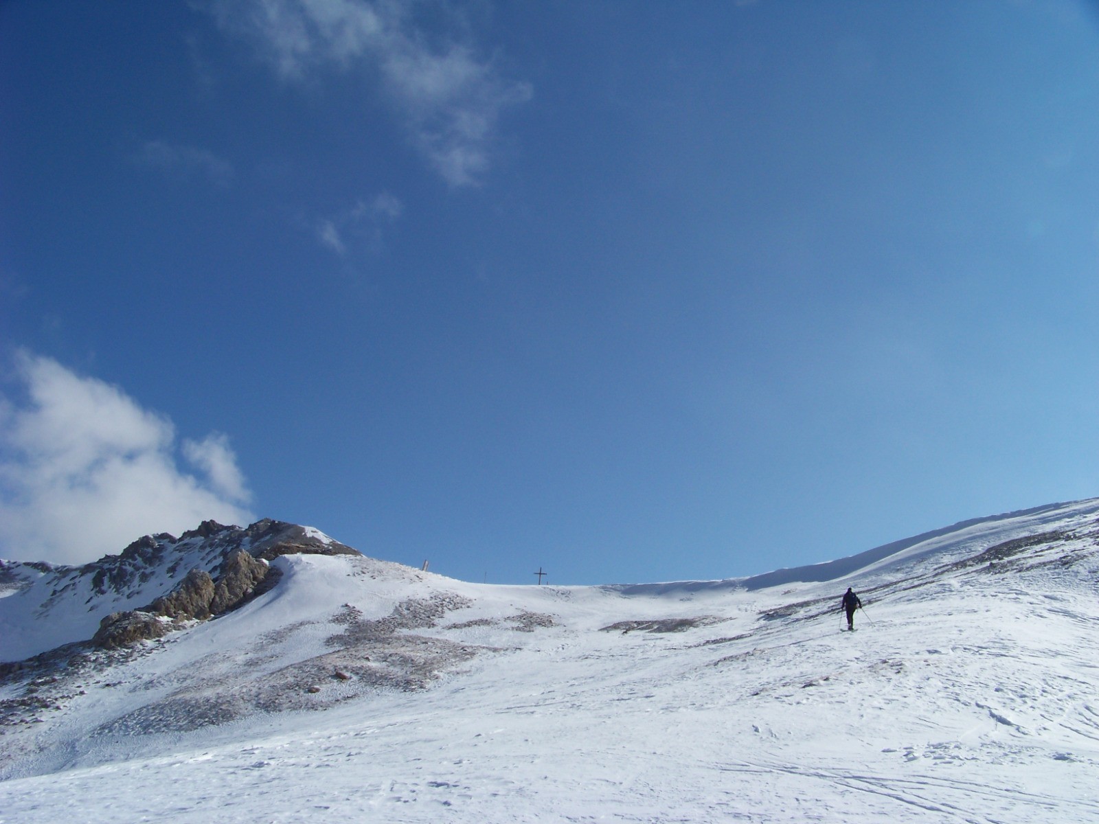Prendre main gauche des pentes un peu plus soutenues sous la Grand Bagna, jusque vers 2450m, puis traverser en ascendance jusqu'au col bien visible avec sa croix caractéristique, 1h.