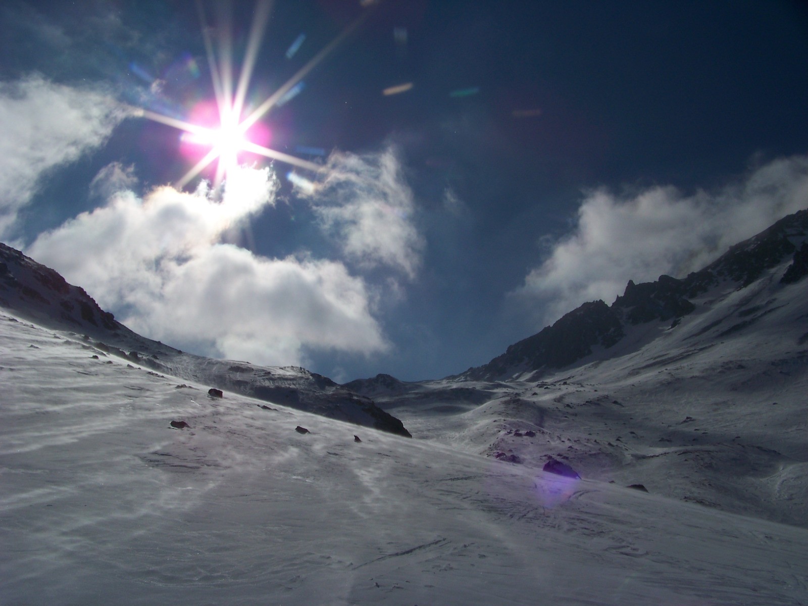 Partir plein sud sous le col pour rejoindre le fond du vallon de la Roue à 2350m (courte pente à 30°)