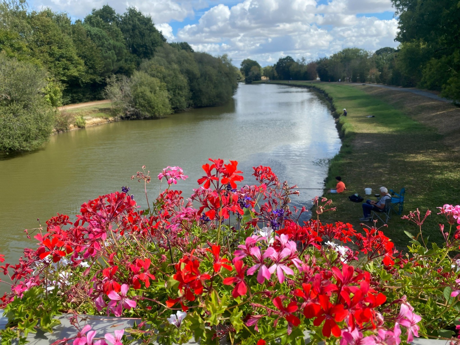 La fin du parcours retrouve davantage d’intérêt : on rejoint de nouveau les berges de la Boulogne, plus animées, où de nombreux pêcheurs installés rappellent la vocation vivante de la rivière.