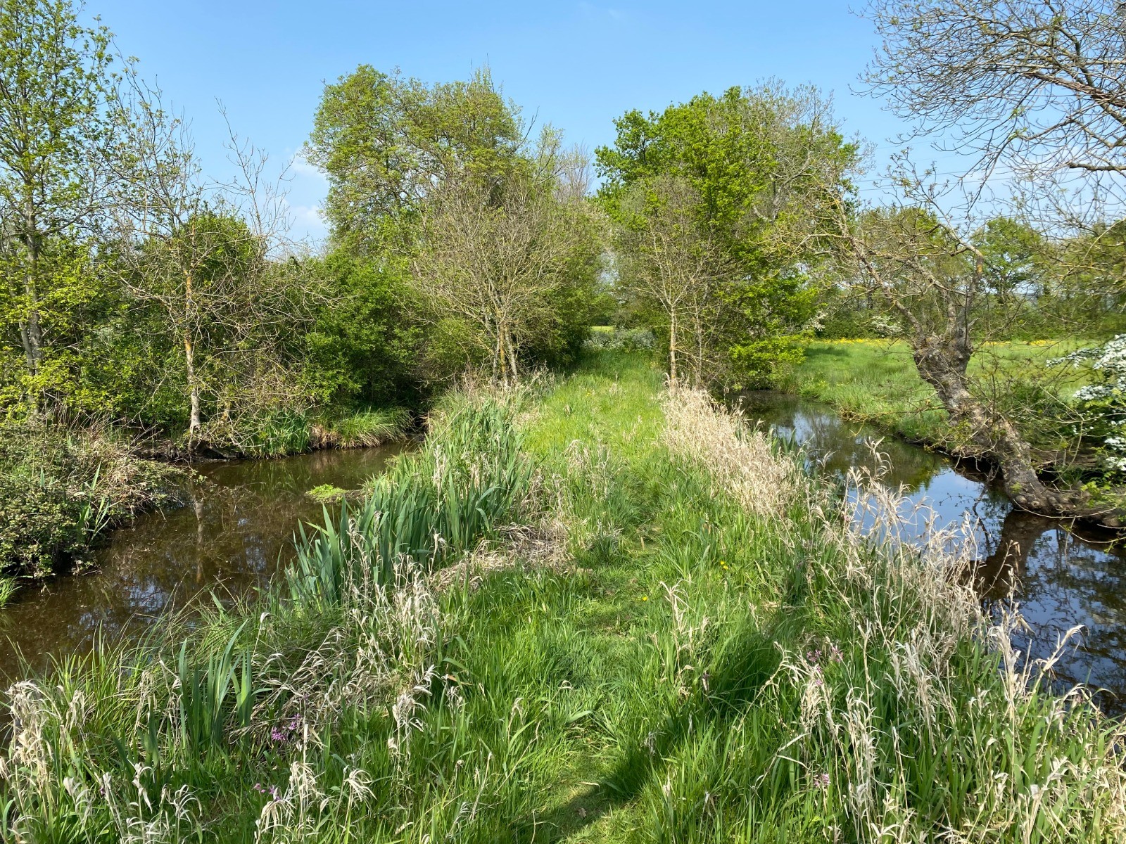 Au fil des saisons, les prairies s'ornent de couleurs. les reflets pourpres de la fritillaire pintadine succèdent au jaune étincelant de l'iris des marais et offrent à cette balade un décor chatoyant pour les yeux