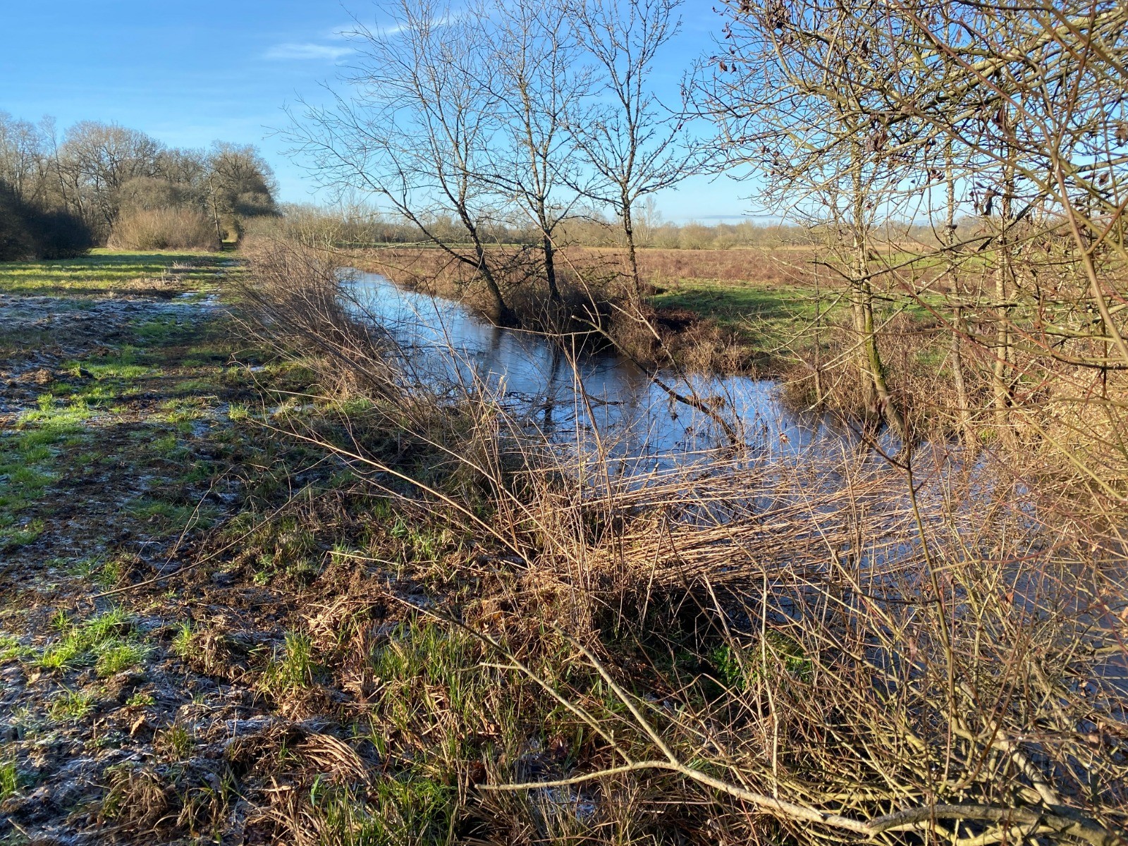 En hiver, ses berges basses disparaissent souvent sous l’eau, rappelant que la rivière reste maîtresse des lieux.