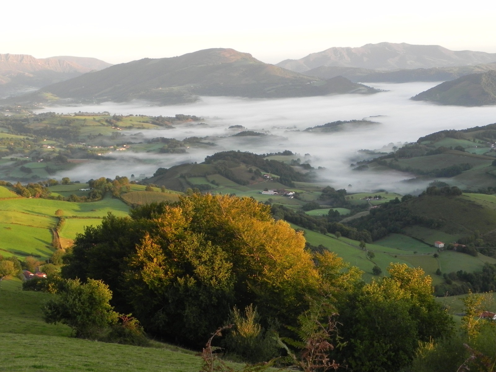 A mi- montée, passage devant l auberge Ithurburua ( refuge); un peu plus haut, la route décrit une large courbe vers le Sud; quitter la route et monter par une piste en lacets, jusqu à la table d orientation où l on retrouve la route. ( fontaine). À gauche de la table d orientation ;
