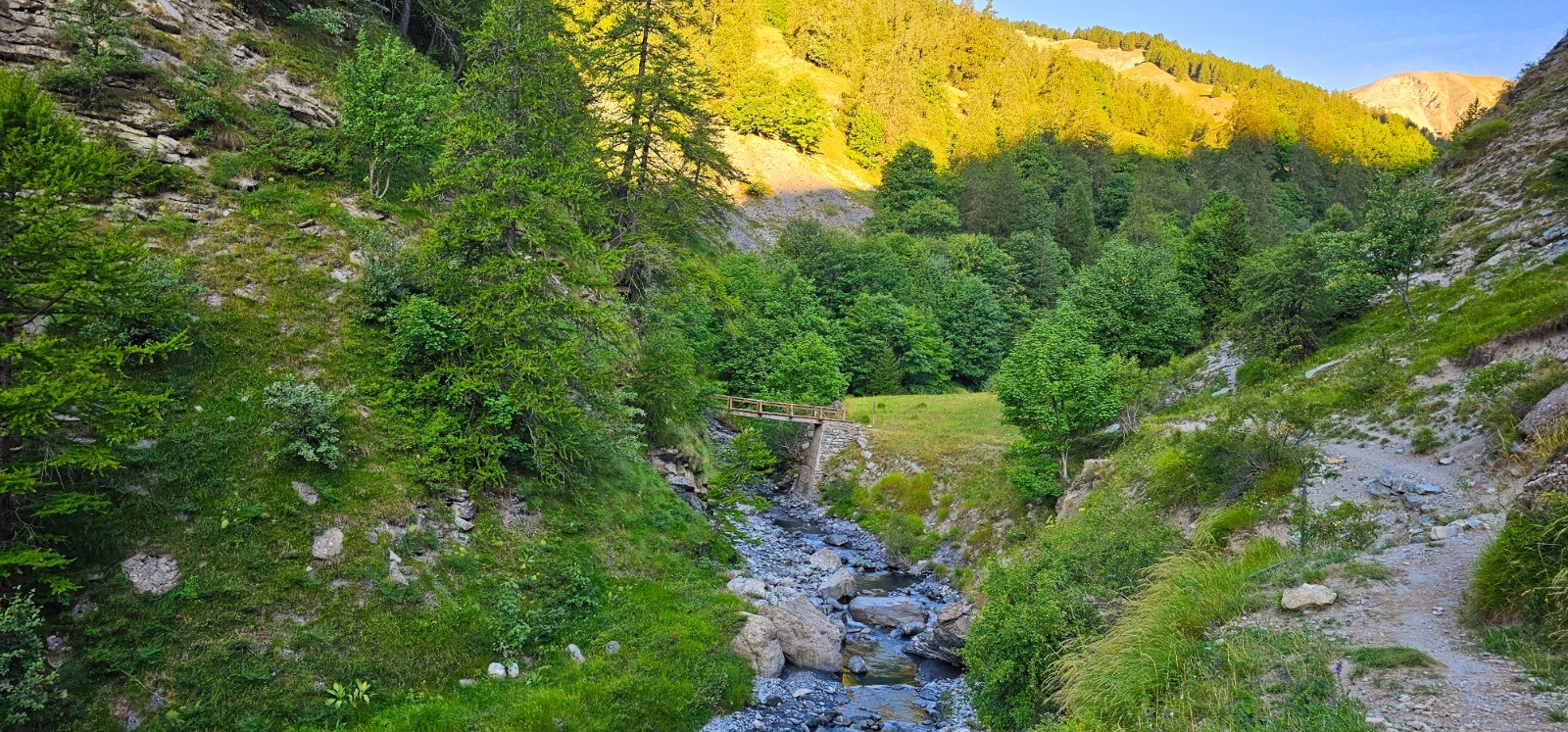 Partie concentrant tout l'effort ascensionnel du parcours avec une 1ère phase plus bucolique longeant le cours de la Roya jusqu'à la balise 148 avant d'entamer la montée vers le col du Chavalet en progressant par les beaux alpages de Ruissiènigous.