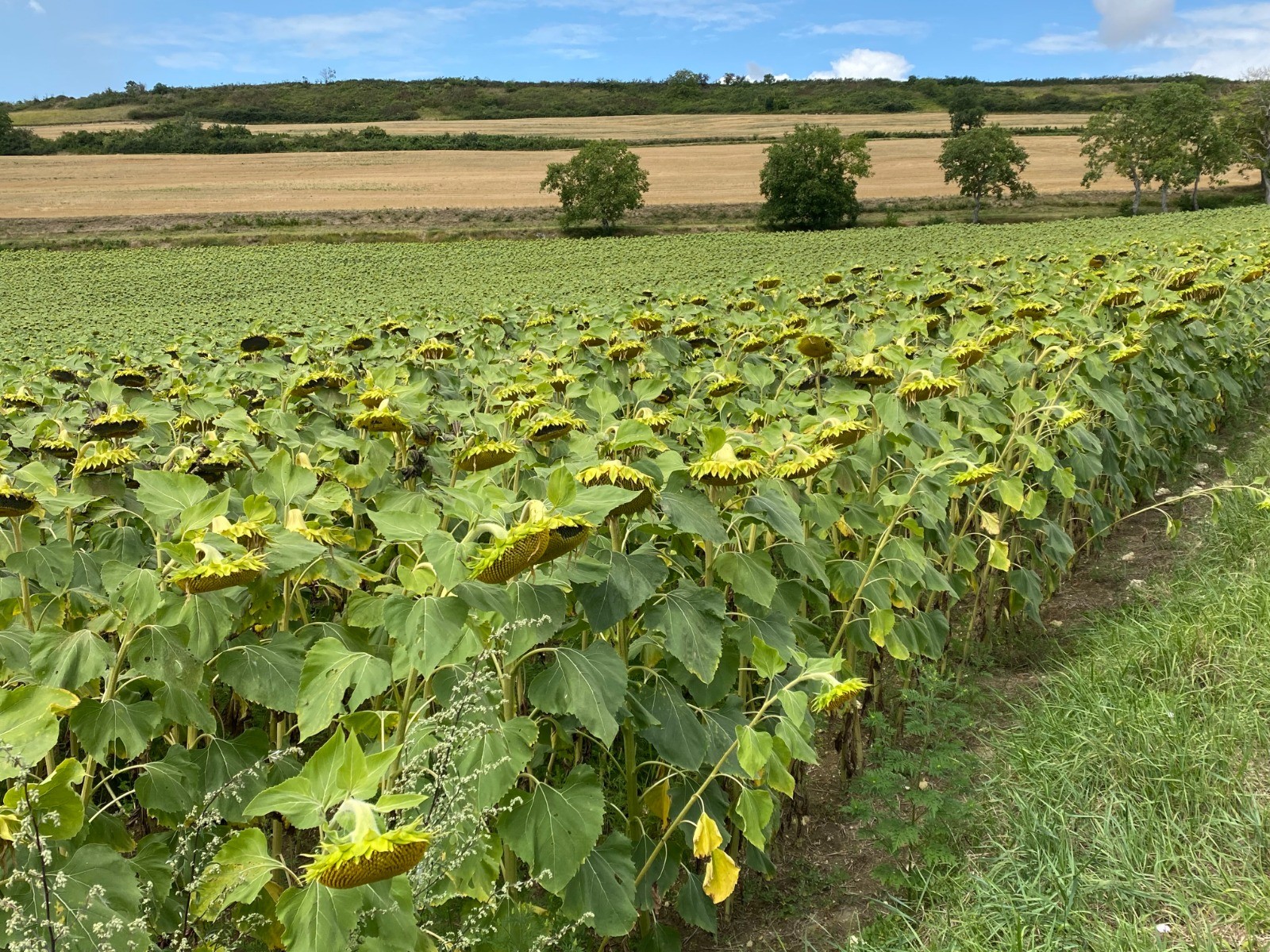 Kilomètre 9 nous quittons la Sioule pour découvrir des panoramas du Bourbonnais où nous avons de nombreuses cultures de maïs, céréales, colza, tournesols...