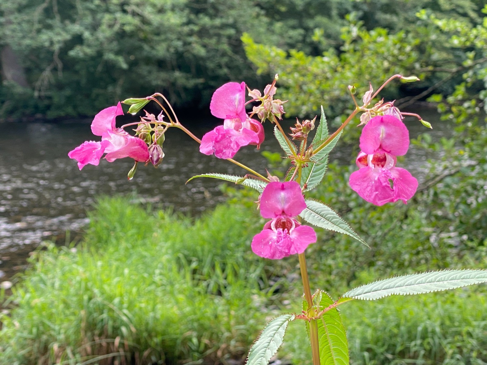La Sioule est entre autre bordée par de grandes fleurs nommées : "Balsamine de l'Himalaya" ( photo no 15 ) et des salicaires.