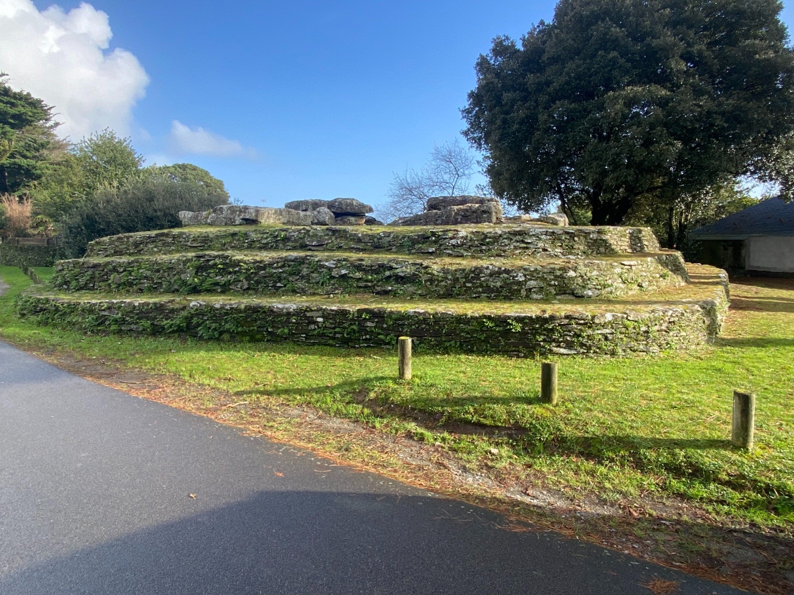 Formé d'un cairn quadrangulaire d'environ 180 m², imposante masse de pierrailles, il est ceinturé de trois murs, en pierre sèche, étagés en gradins.
