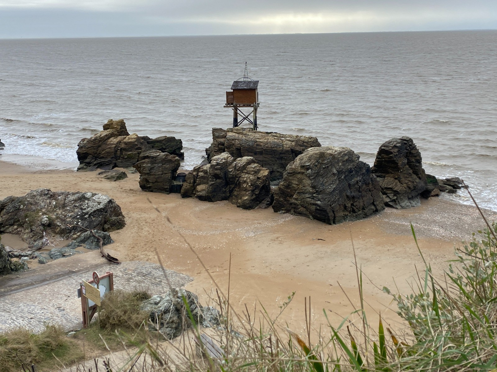 Direction la plage de la Boutinardière qui est une grande crique de sable où se dressent d'étranges et gigantesques rochers au milieu d'innombrables pêcheries.