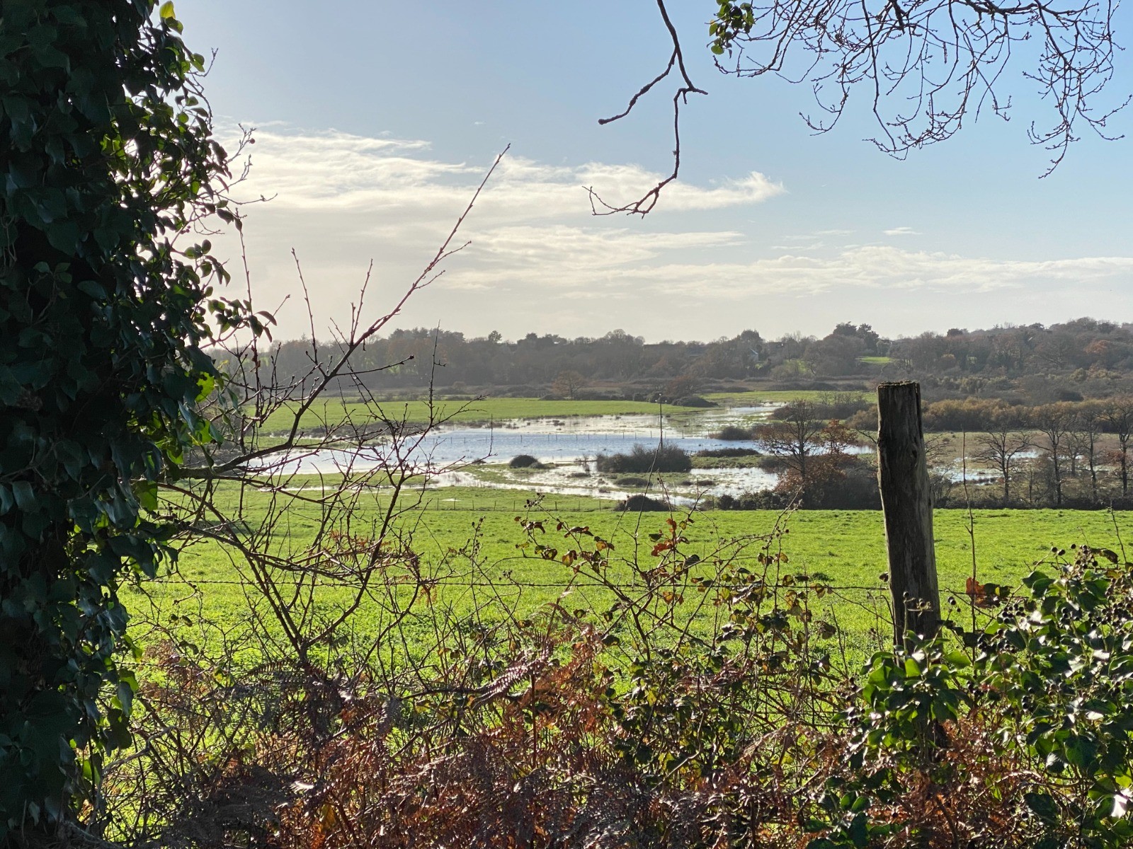À la sortie de celui-ci le chemin est inondé ( photo no 12 - sur dix mètres avec 20 cms d’eau ) et m’oblige à enfiler mes couvre-chaussures de pluie que j'avais pensé à emmener !