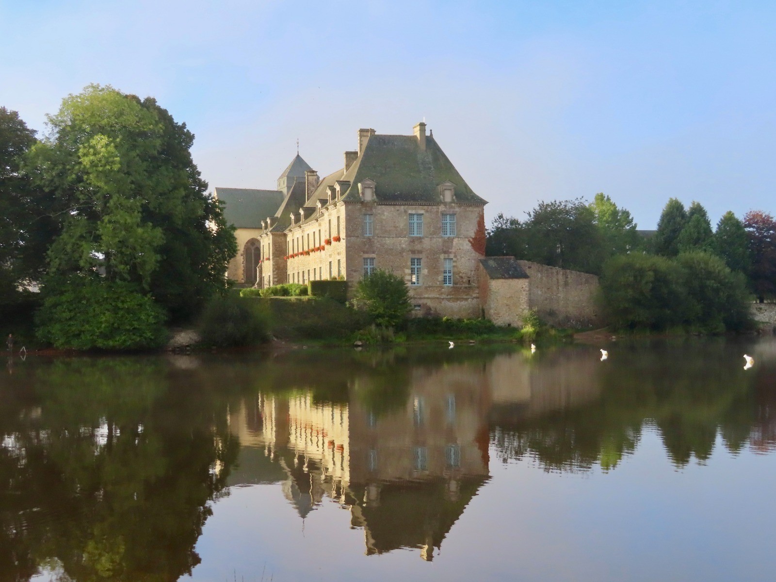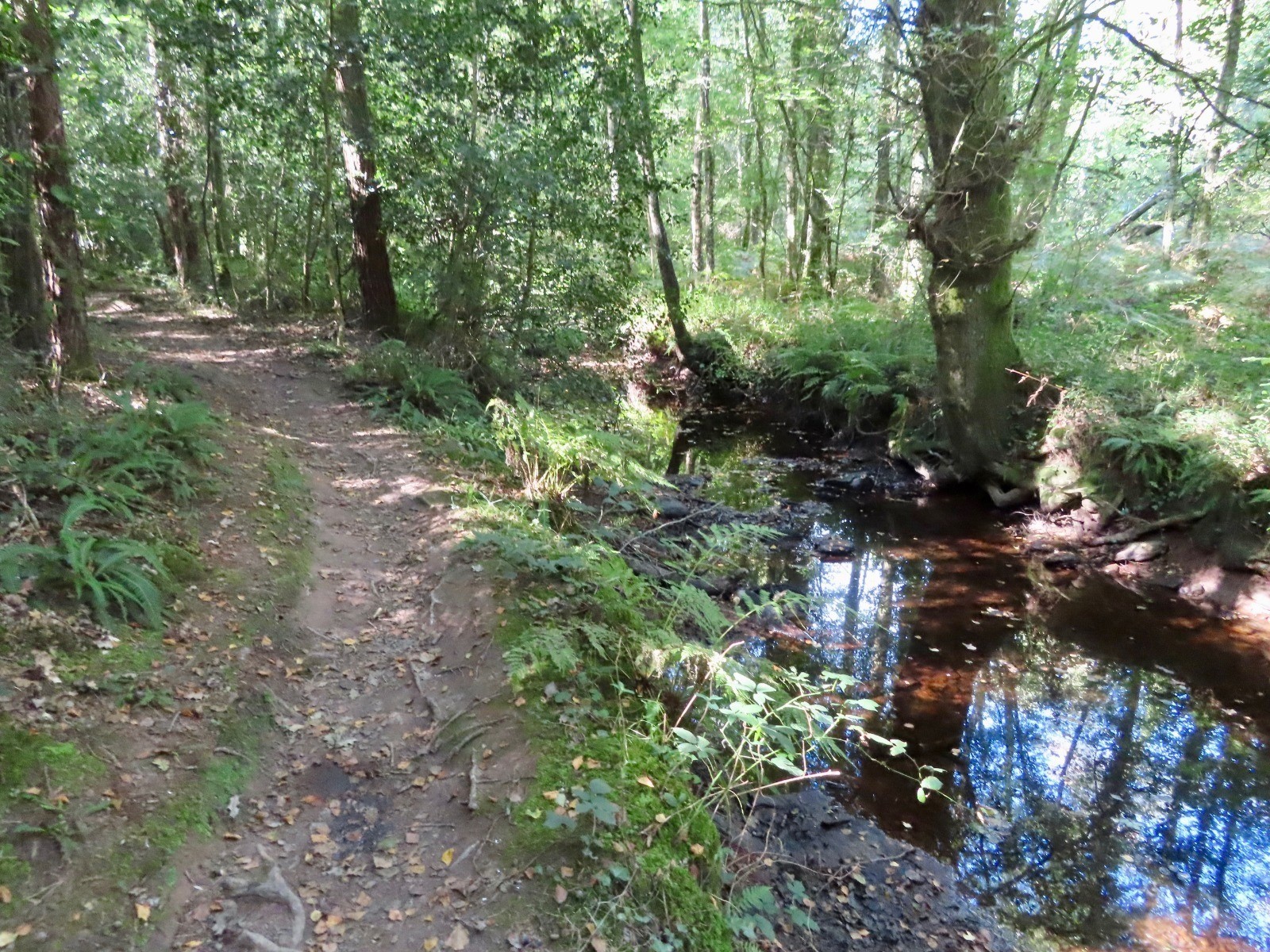 De l'esplanade se diriger vers l'abbaye et prendre l'avenue du Chevaillier Ponthus longeant le plan d'eau. A la Volée, suivre les balises du circuit du Cannée vers le hameau de la Corne de Cerf. Au chemin des Forges, tourner à gauche vers le carrefour de Moustache et le Château des Forges. Suivre le GR37 sur la D773 jusqu'au Forges d'en Bas et se diriger sur la droite dans la vallée de l'Aff. Au bout de 2 kilomètres environ, prendre la passerelle et suivre le GRP montant vers la D71. Suivre le balisage jusqu'à la Croix du Houx et contourner le plan d'eau sur le chemin aménagé de Caillebotis, passerelles et pilotis dans la lande et tourbières.