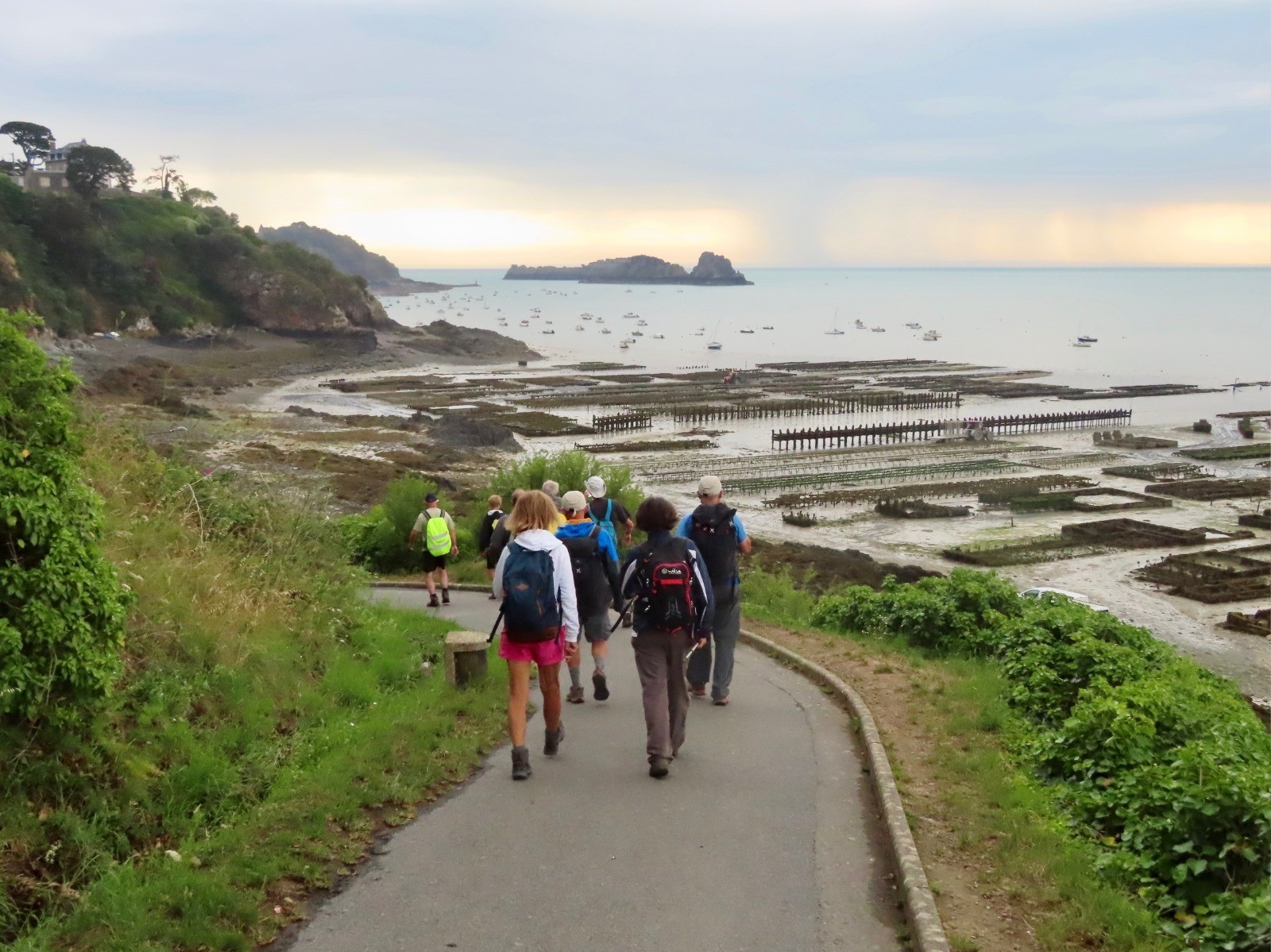 Cancale, au coeur de la baie du Mont-Saint-Michel, est l'un des sites incontournables de la côte d'Emeraude. Ses vastes parcs à huitres structurent tout le décor maritime, et leur dégustation sur le port fait partie des traditions locales les plus typiques. Cette randonnée terre-mer conduit jusqu'à la Pointe du Grouin, entre passages sur le GR34, points de vue sur la baie et découverte de l'arrière pays cancalais.