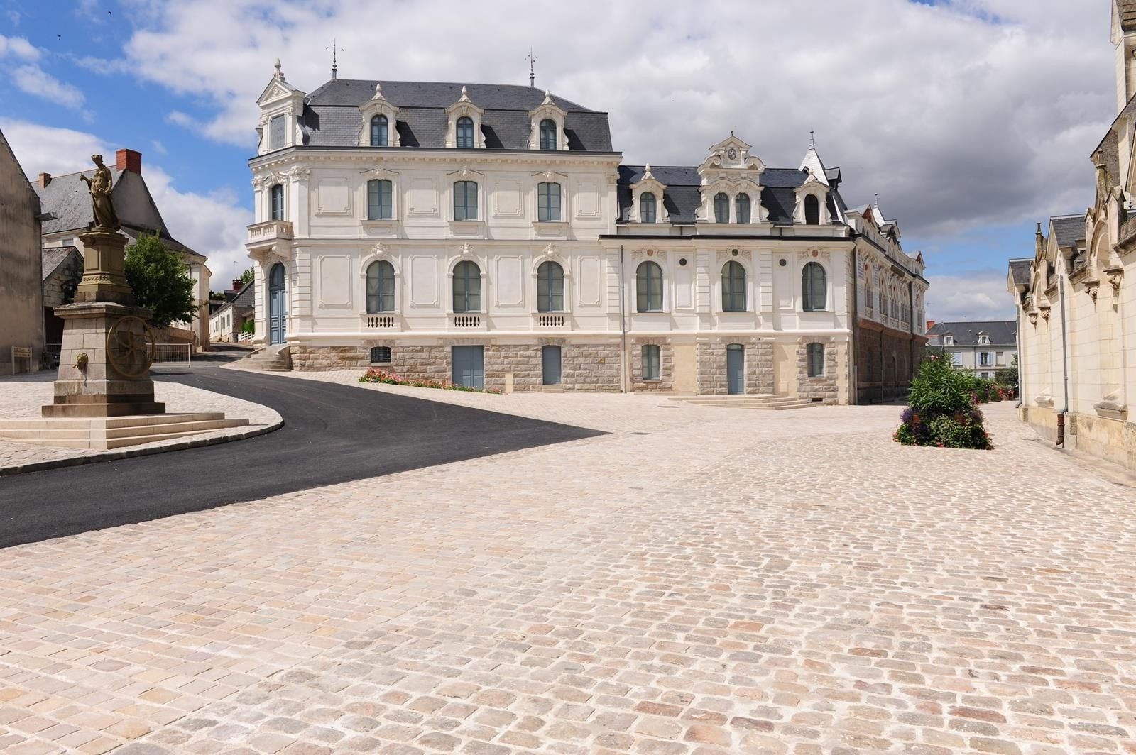 Le départ de la boucle se situe: place Notre Dame, parvis de l’église en face le Cinéma dans le centre de Beaufort-en-Anjou (Maine-et-Loire).