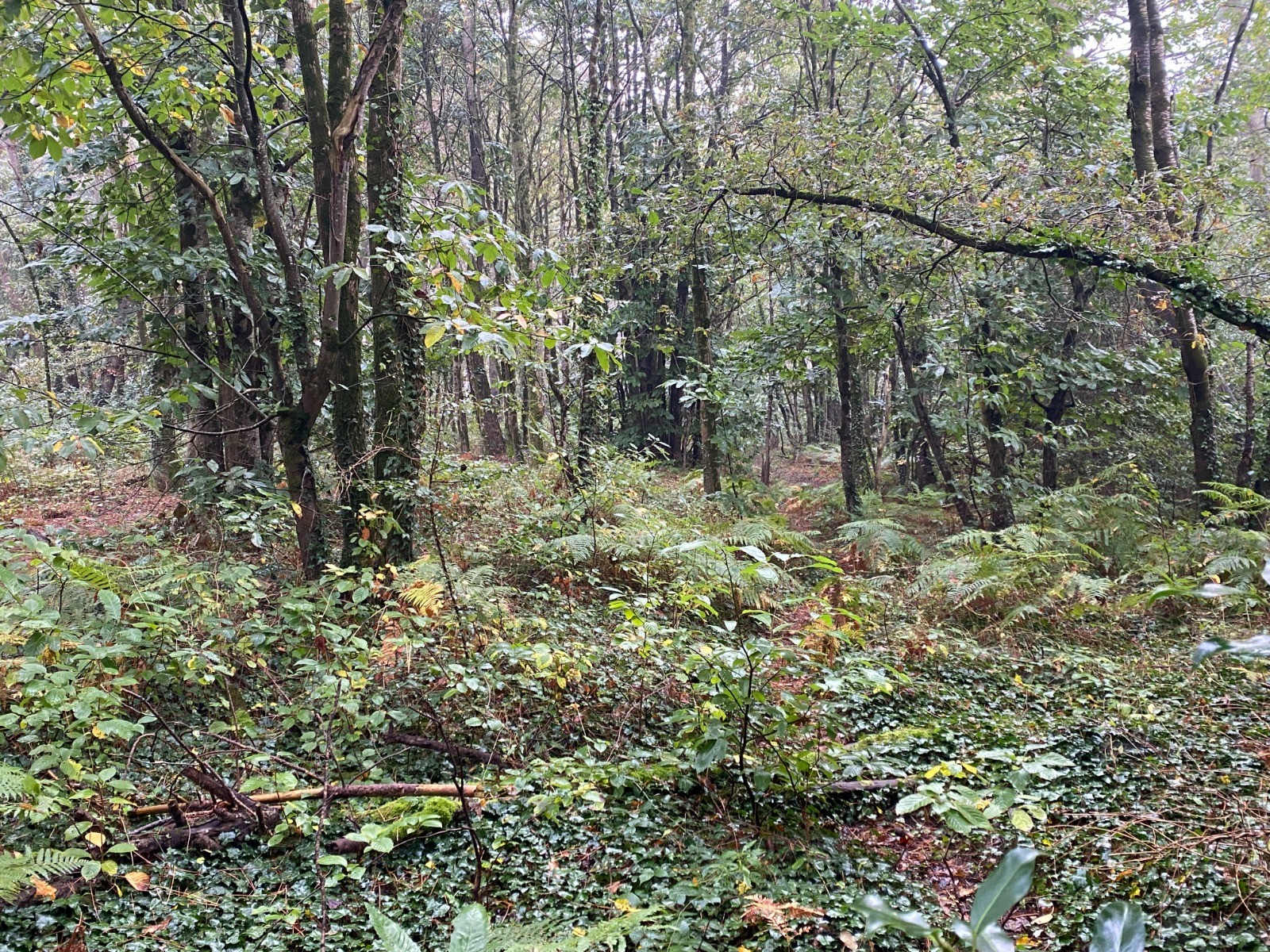 A plusieurs reprises le tracé emprunte des petits chemins forestiers où l'on marche sur des tapis de feuilles de châtaigniers, de pins...