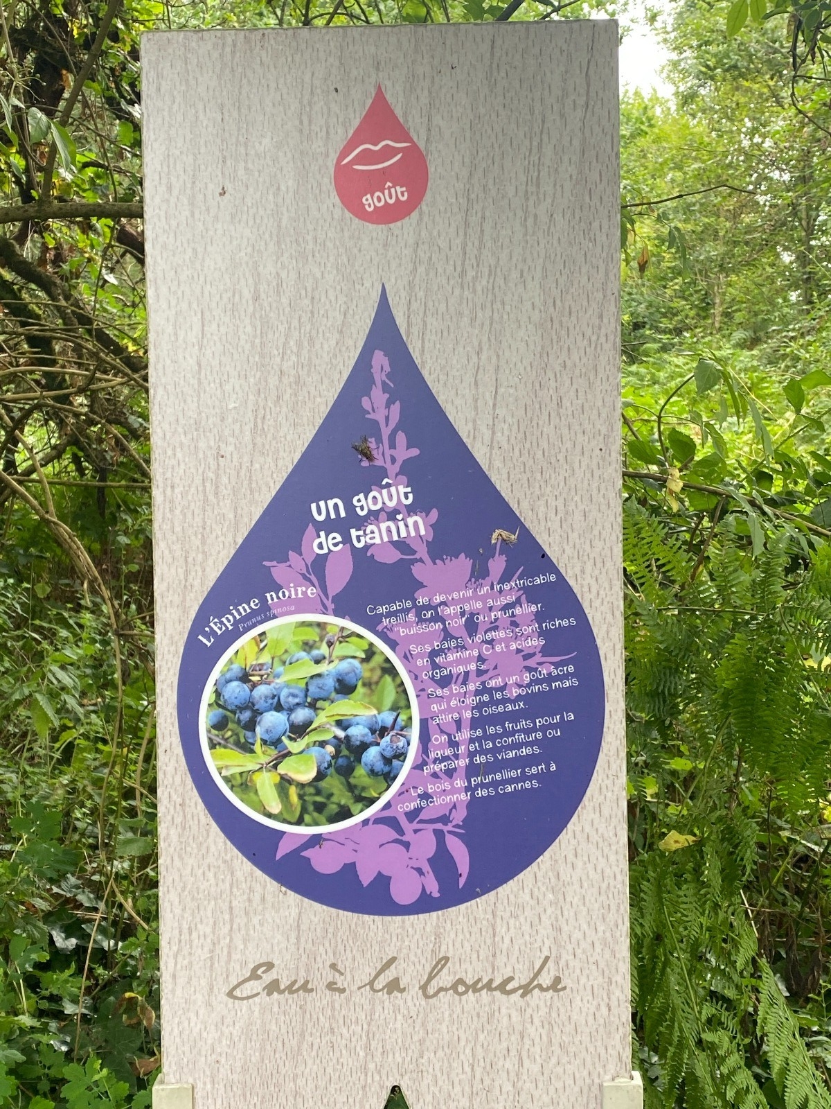 Sur une partie de ce chemin pédestre, vous pourrez découvrir le parcours d’interprétation « Eau à la bouche » pour mieux connaitre, de manière ludique, des plantes aux caractéristiques olfactives fortes ou qui ont un goût bien particulier. ( photo no 18 ).