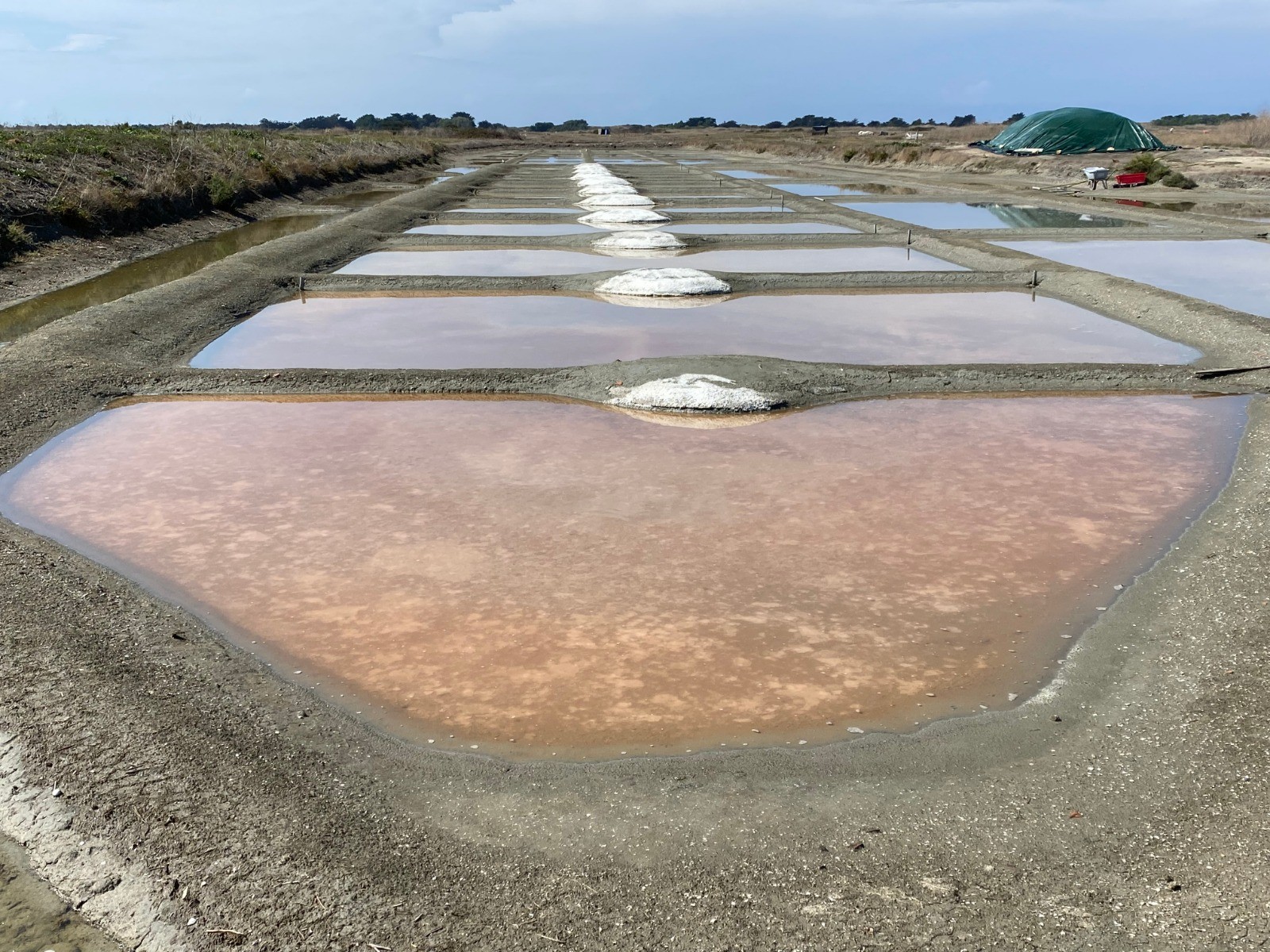Plus nous avançons dans les marais plus nous voyons des salines.