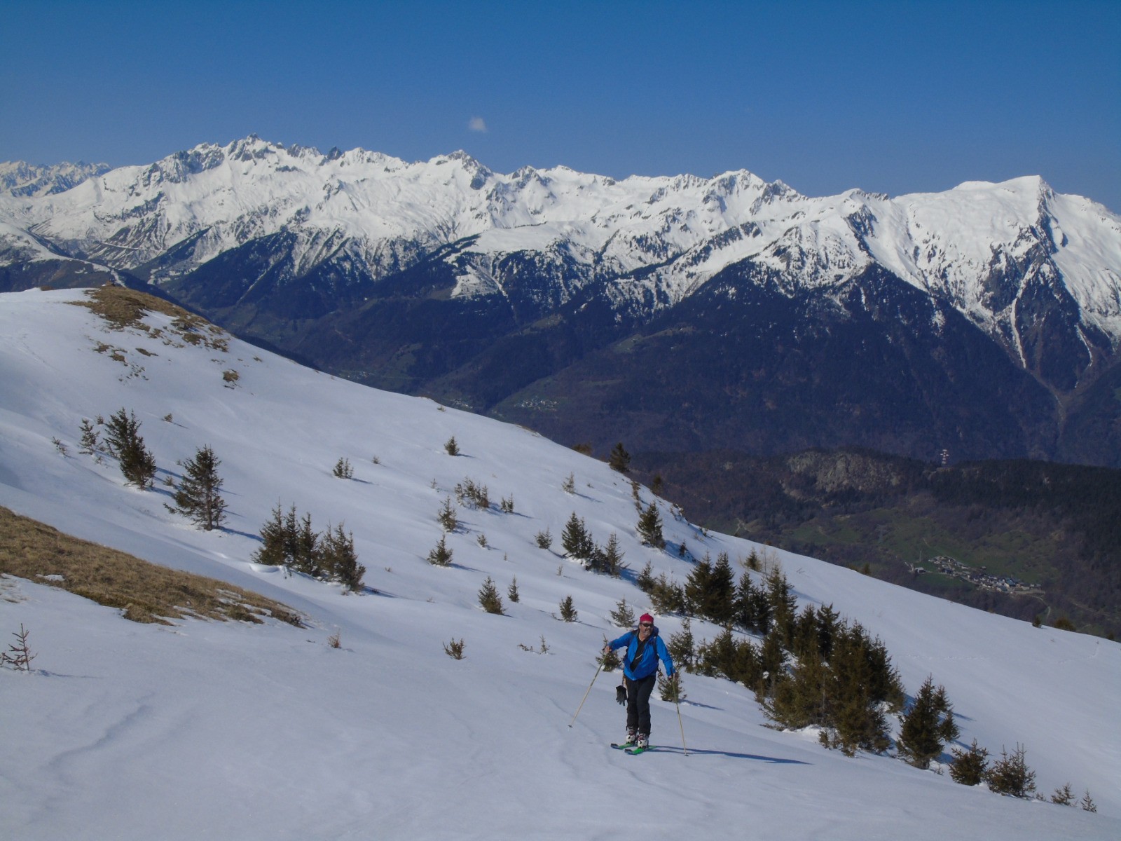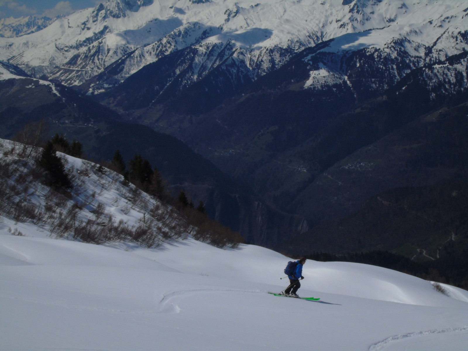 Basculer dans la pente qui domine les chalets de la Forclaz et de Bonpertui (300m/25°, passage à 35° au départ).