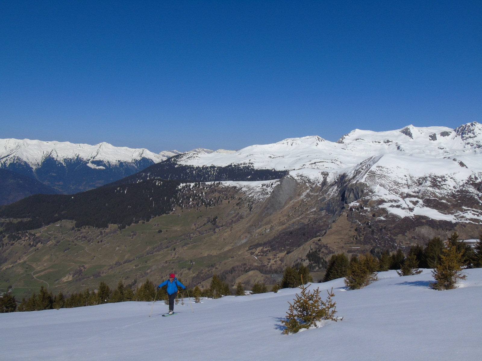 Depuis la Forclaz partir main droite (SW) et traverser au mieux la forêt clairsemée et les arcosses denses! pour récupérer la crête SW du Quermoz (si l'enneigement est abondant les arcosses se traversent pas mal), sinon il faut viser plus bas le lac du Bozon.