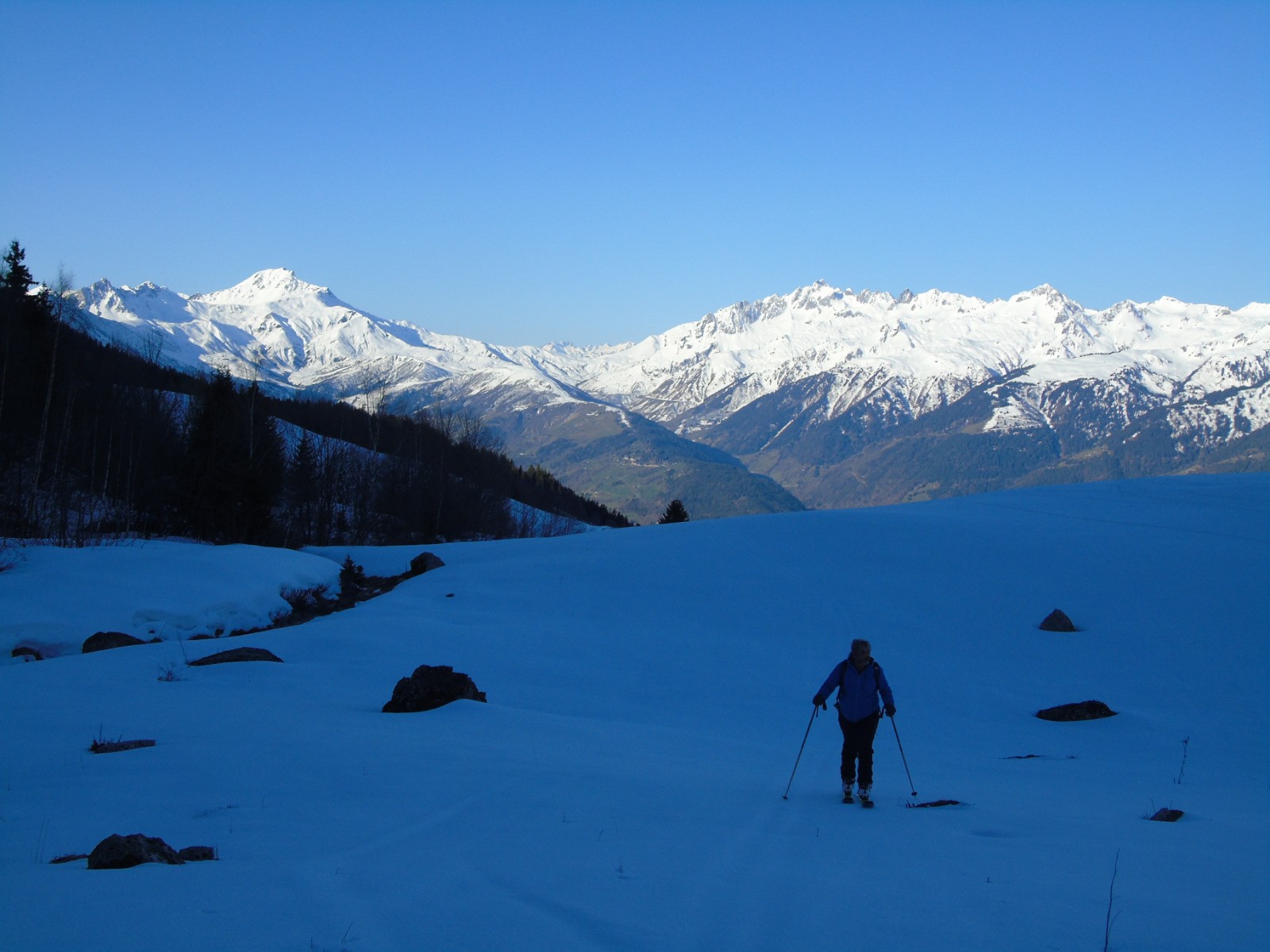 Puis par les alpages en pentes douce retrouver les Terreaux puis Grand Nâves et ou le foyer de ski nordique.