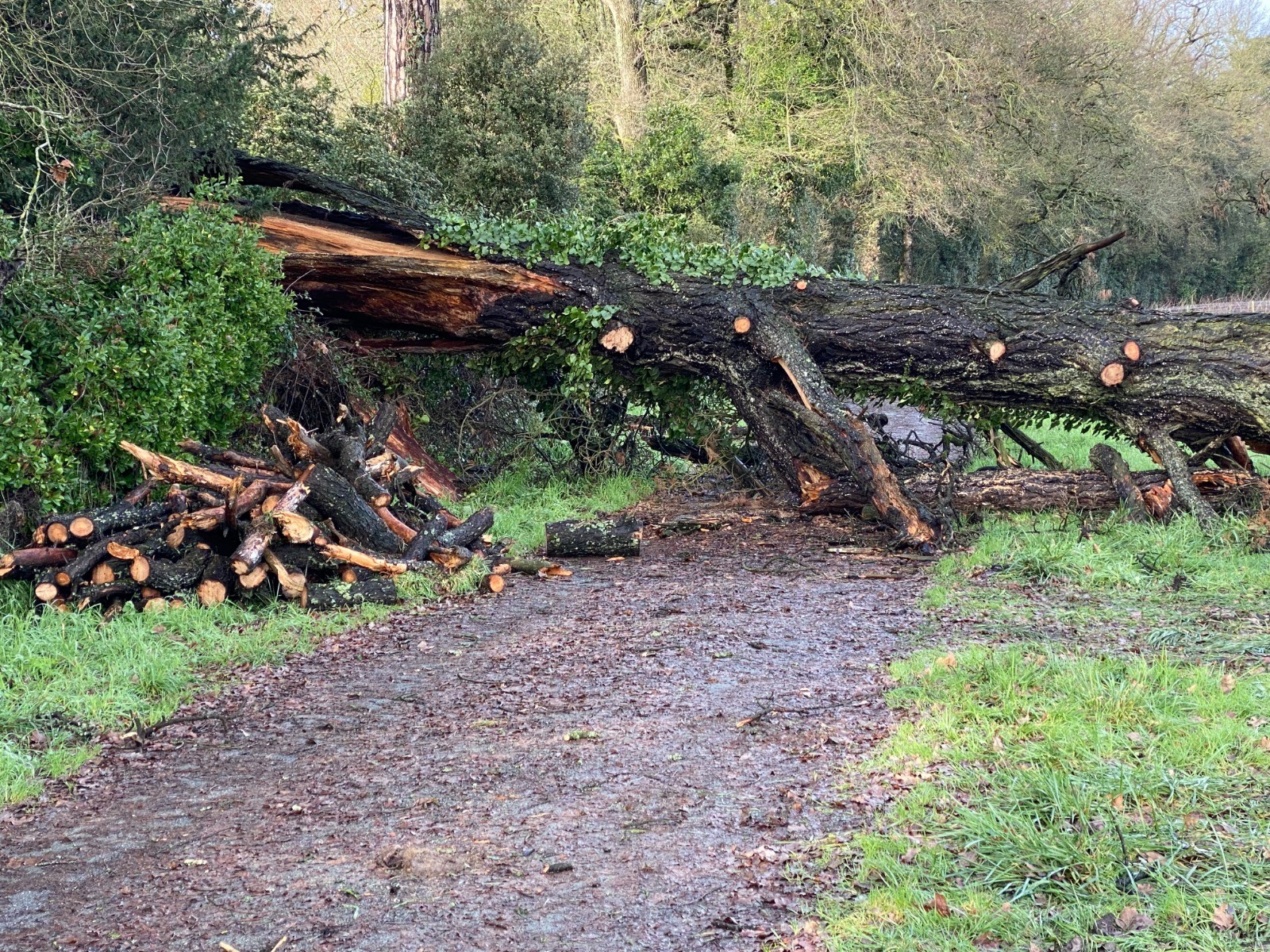 Les chemins sont bien gras et la tempête Gérard a laissé des traces à plusieurs endroits ( photo no 10 ).