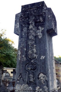 Du parking près du cimetière, pénétrer dans celui-ci et tout droit dans l’allée, chercher la croix (voir image) de la tombe d’Eugéne Thirion *, dessiner par Victor Laloux *. Continuer et sortir pour suivre le chemin par la droite et aussitôt emprunter le sentier qui monte à droite dans l’ancienne sablière ou l’on trouve encore de vieilles carcasses.Faire un tour sur la gauche pour prendre par la droite le sentier qui monte sur le haut de cette sablière et rejoint sur le plateau un grand chemin. Au croissement prendre à droite et un peu plus loin un sentier à gauche qui va tranquillement monter vers la table du Roi et son point de vue, descendre par la droite de celui-ci et retrouver le grand chemin qui se dirige vers la route. Prendre la route sur 50m et à gauche le sentier qui va arriver à la route de la Grande Vallée que l’on suivra sur la gauche jusqu’au prochain croissement. De ce point, possibilité par un aller et retour de voir l’ancienne Chapelle de Kosciuszko * . Au retour, prendre le sentier tout droit et un peu réhaussée, il s’agit de l’ancienne ficelle * au bout prendre à droite entre les deux culées de l’ancien pont et ensuite aussitôt à gauche, puis monter.