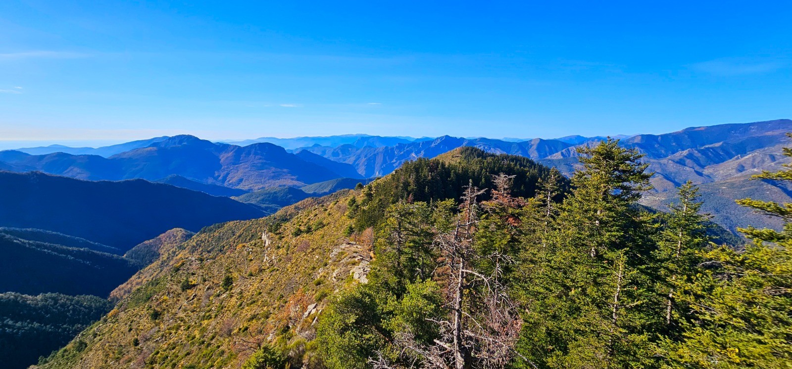 Très belle alternance de lignes de crêtes et de forêts communales (de Moulinet, de Turini et de Lantosque) avec cheminements en ubac ou adret et partie en balcon qui renoue avec le couvert végétal du bois de la Maïris en fin de circuit.