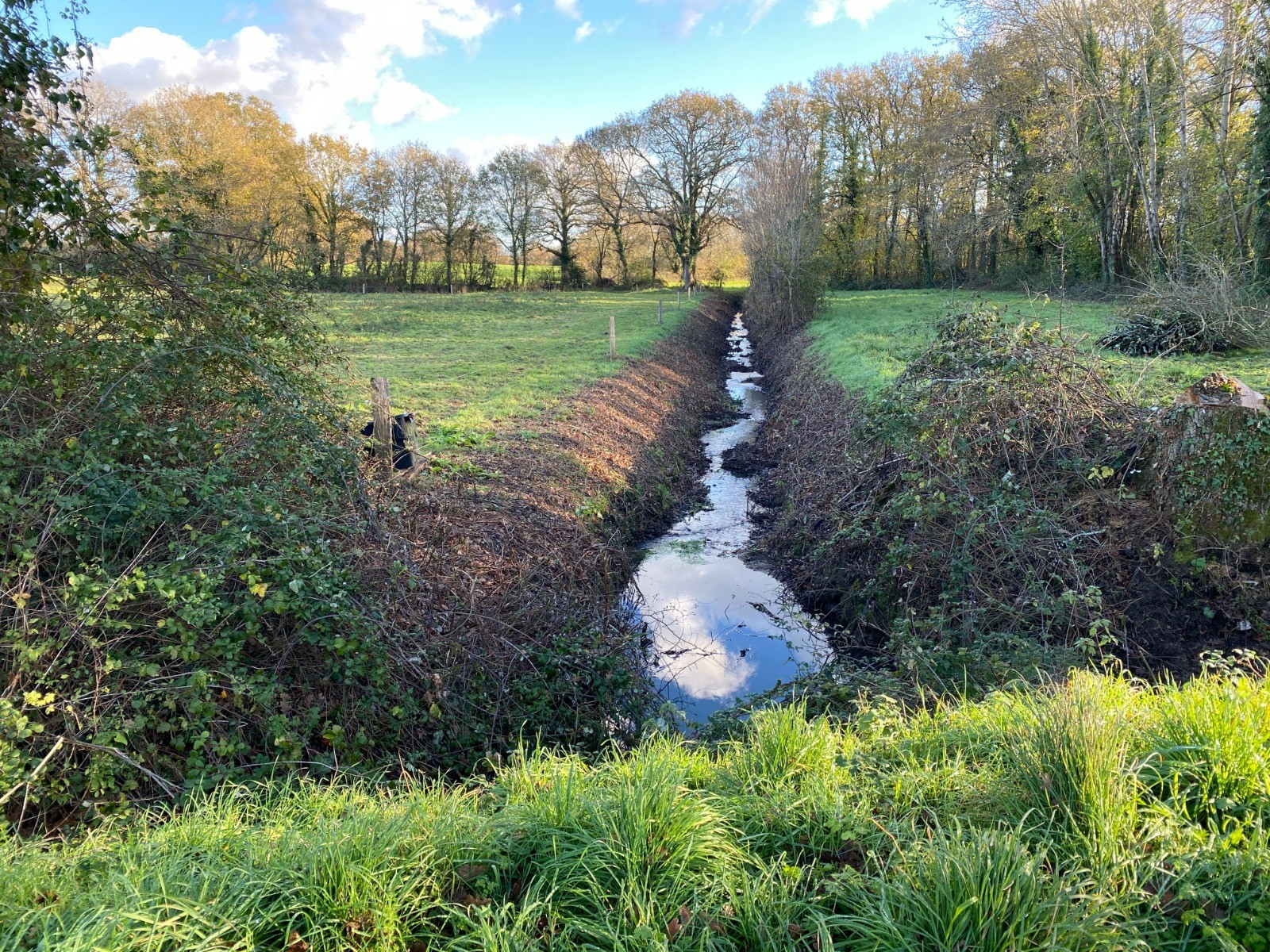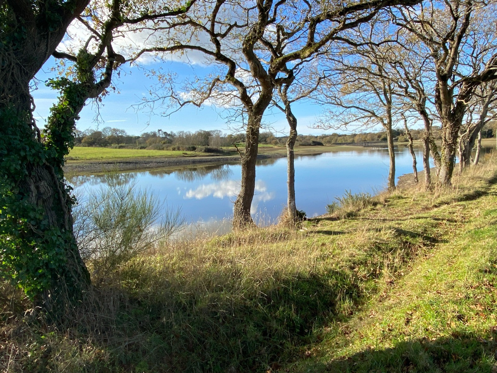 Le chemin contourne ensuite l’étang et remonte vers des prairies légèrement vallonnées, typiques du Pays de Retz.